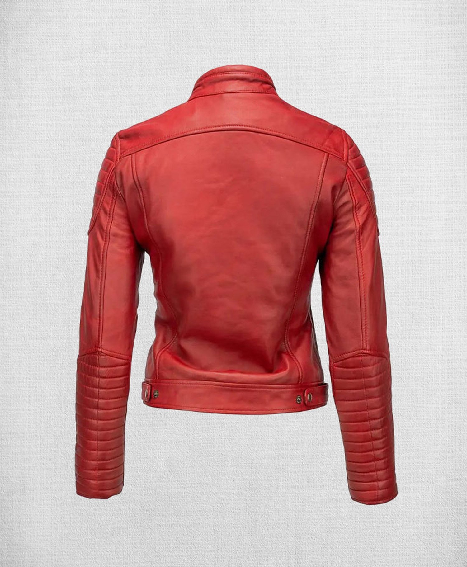 Fashionable Red Leather Biker Jacket with White and Red Stripes
