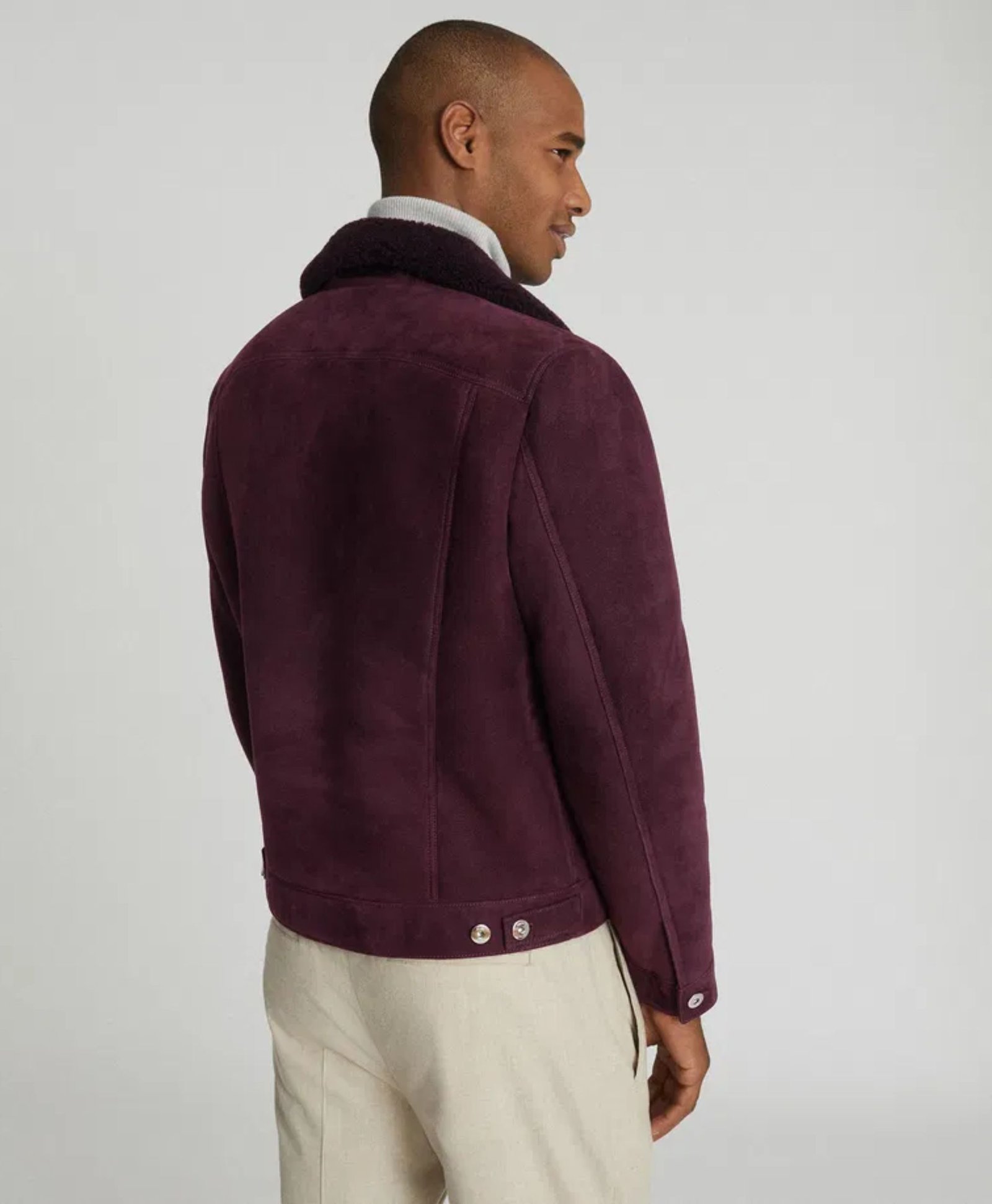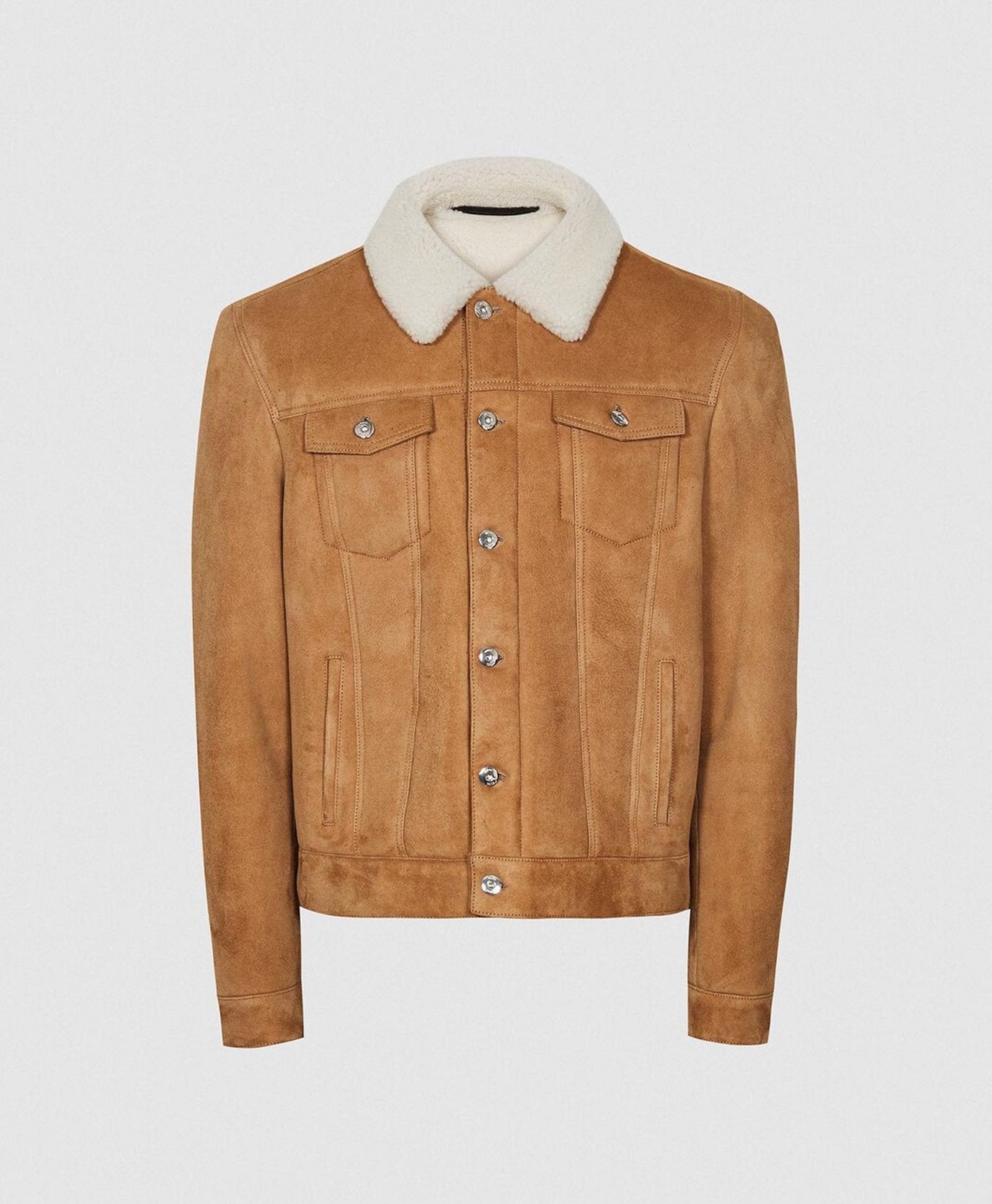 Faux Shearling Collar Real Suede Trucker Stylish Leather Jacket