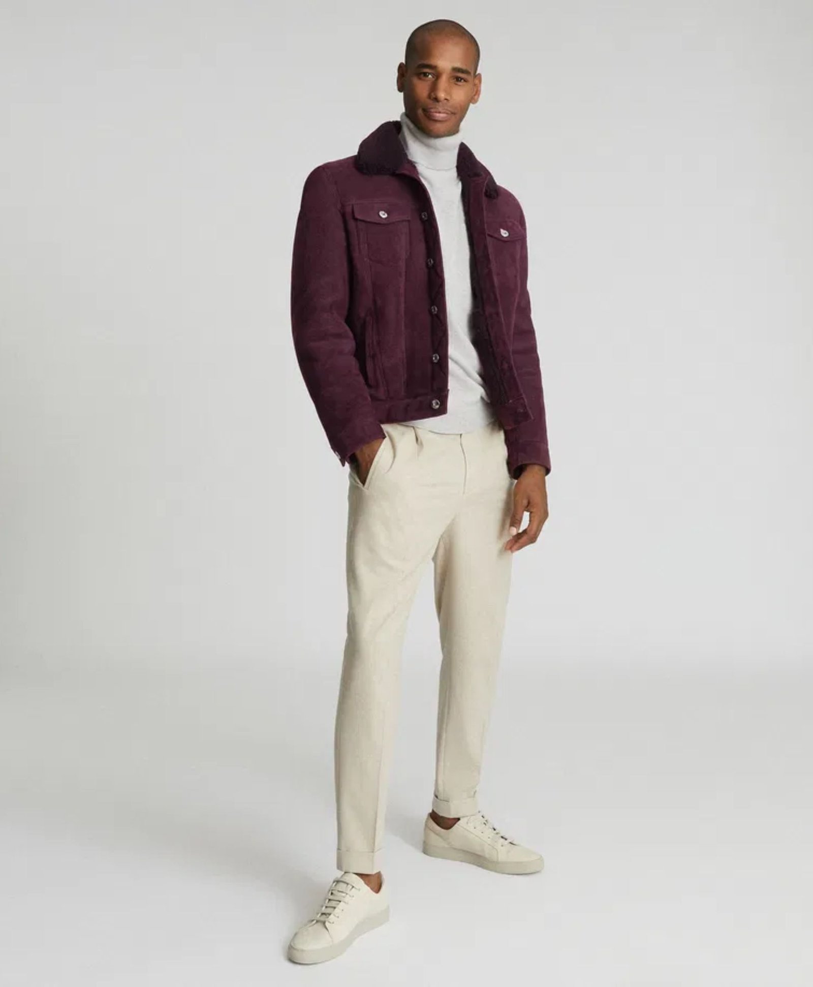 Function meets fashion with multiple functional pockets including popper-fastening chest pockets, two side seam pockets, and a secure interior pocket for everyday essentials. The fully lined interior ensures comfort and smooth layering, while popper-fastening cuffs and hem tabs provide a tailored fit. Available in rich burgundy and warm whiskey brown, this real suede trucker jacket by Movie Jackets Hub is a versatile essential for men who appreciate quality craftsmanship and refined casual style.