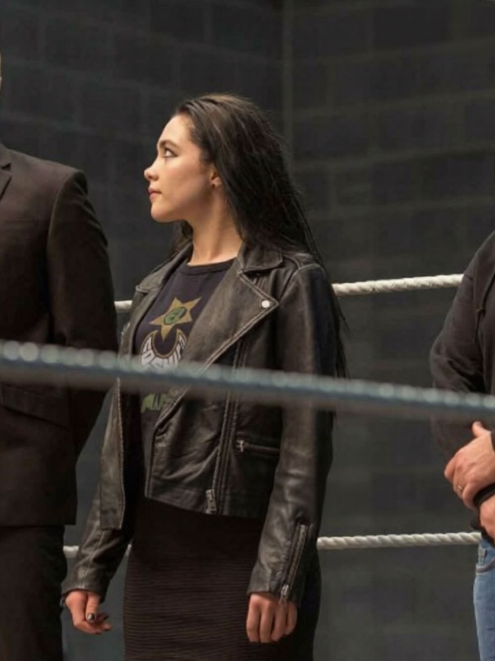 Fighting With My Family Florence Pugh Leather Jacket by Movie Jackets Hub is designed from the original real leather material. It has a viscous lining inside of this jacket which makes it very special and comfortable. It has easy Notch lapel collar style which makes it very attractive for stylish women.