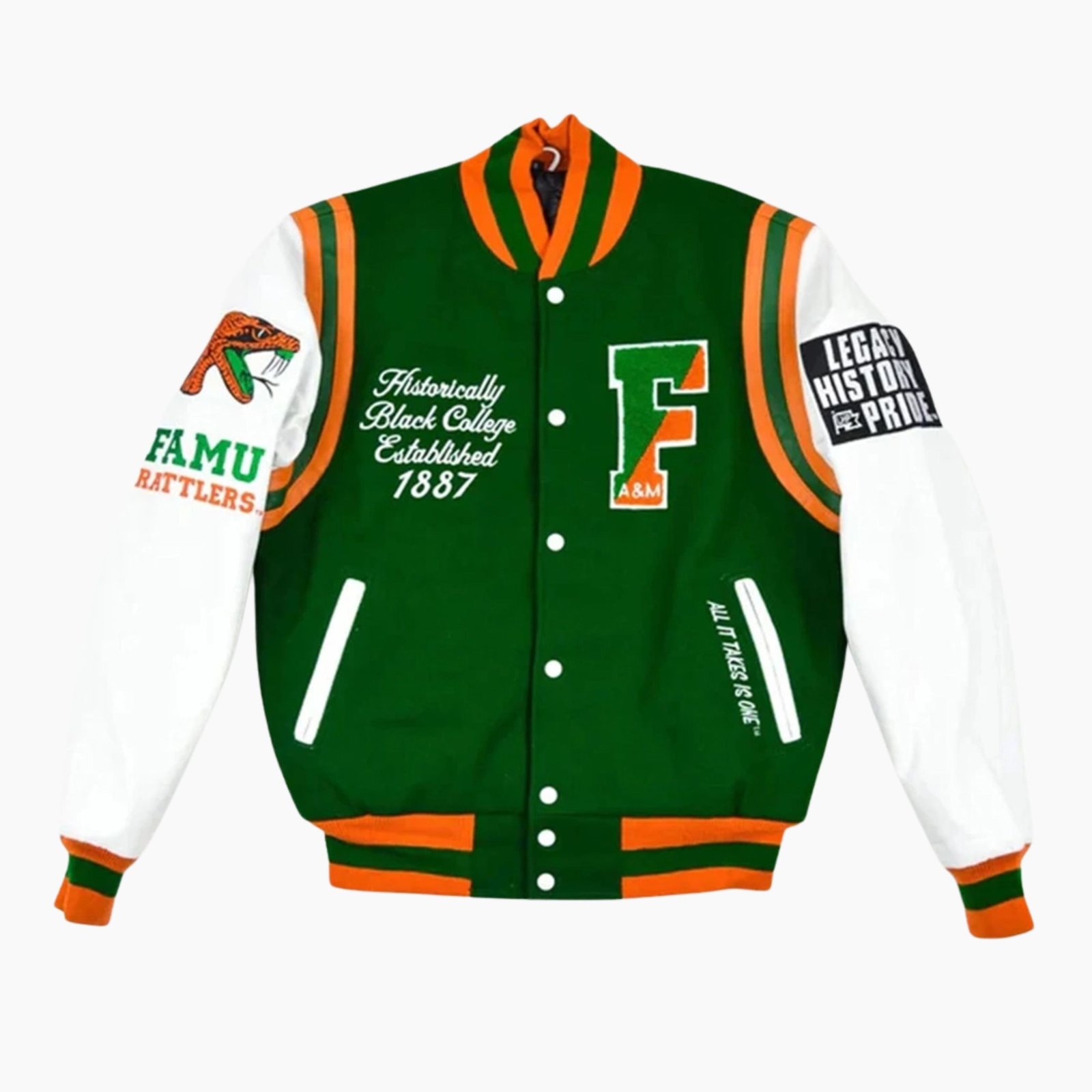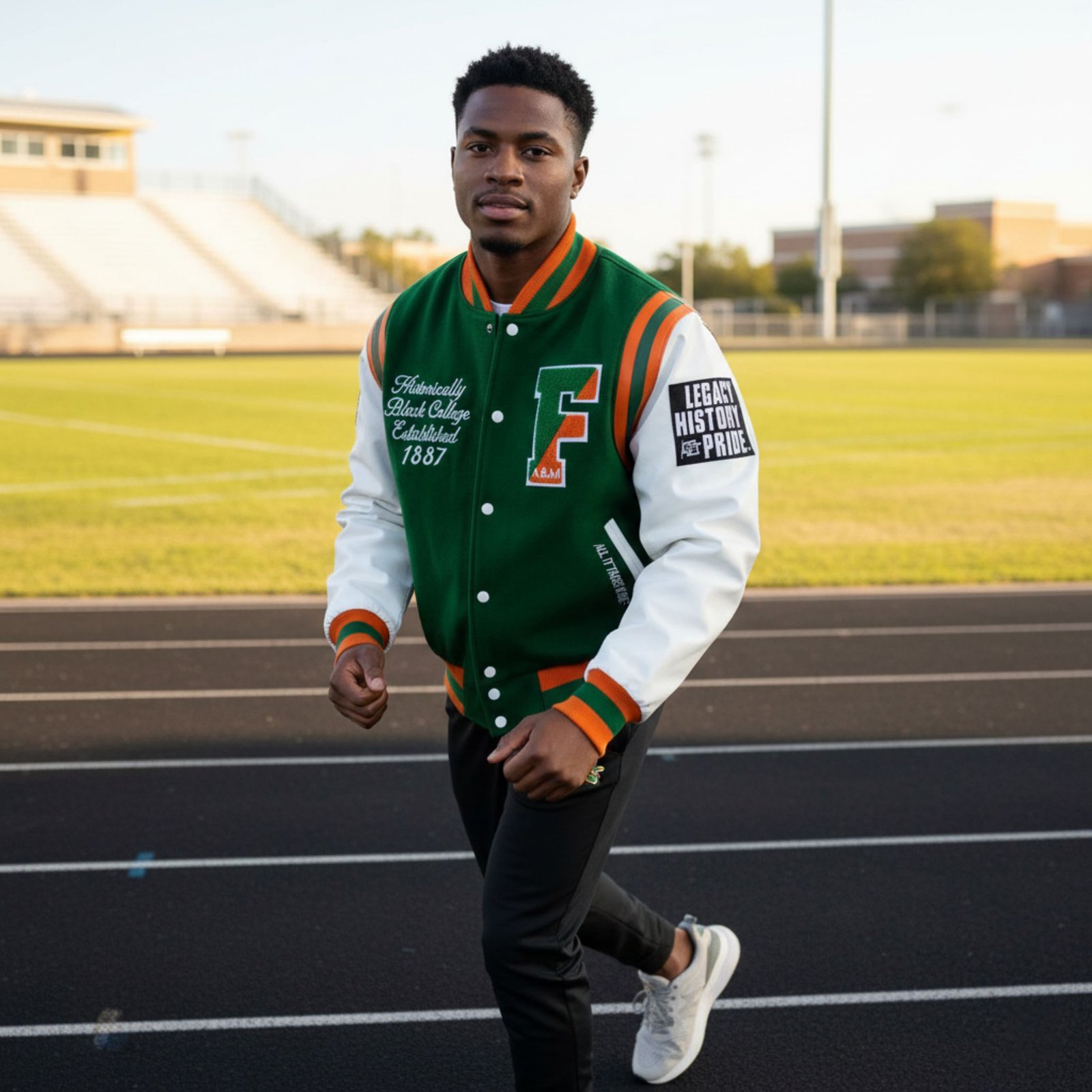 Show your FAMU pride in style with the Florida A&M State University Varsity Jacket, designed for both men and women. This premium unisex varsity jacket combines comfort, durability, and iconic college fashion, making it perfect for alumni, students, and fans alike.