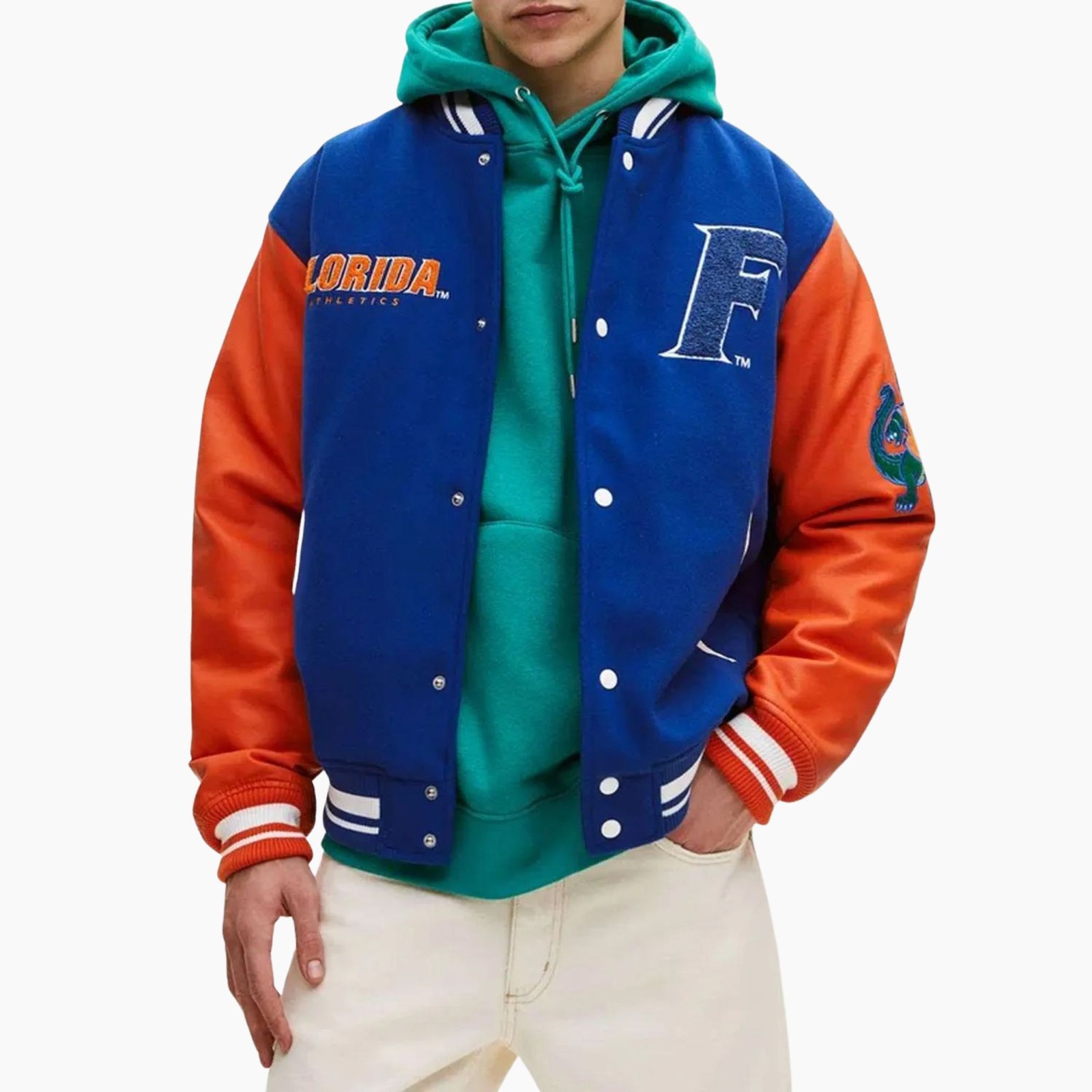 With its iconic royal blue and orange color combination, this jacket captures the spirit of the Florida Gators, making it perfect for sporting events, campus life, or casual streetwear.