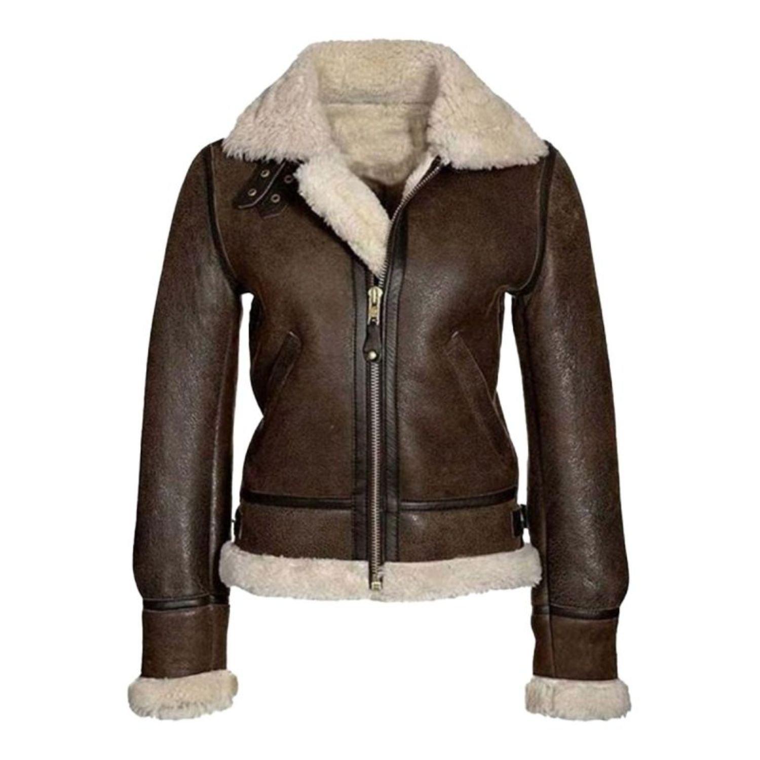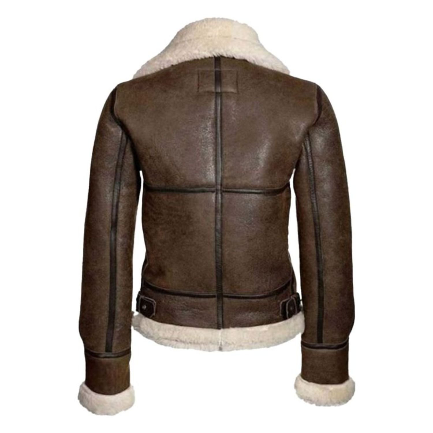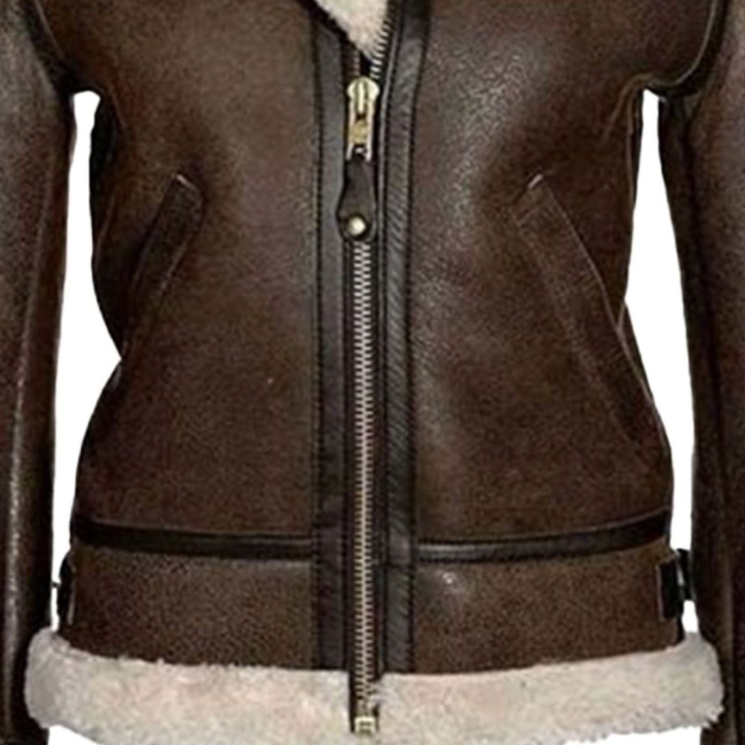 This breathtaking Men Aviator B3 Bomber RAF Fur Leather Jacket has a buckle strap under the collar. The closure has composed of a YKK zipper with a belt. This has handcrafted and made with Leather material. The External of the bomber jacket crafted with durable quality leather, whereas the internal is also comfortable, and this jacket is available in distressed brown color. Additionally, it has two zipper pockets on the front, and it has open hem cuffs. Buy mens shearling jacket.