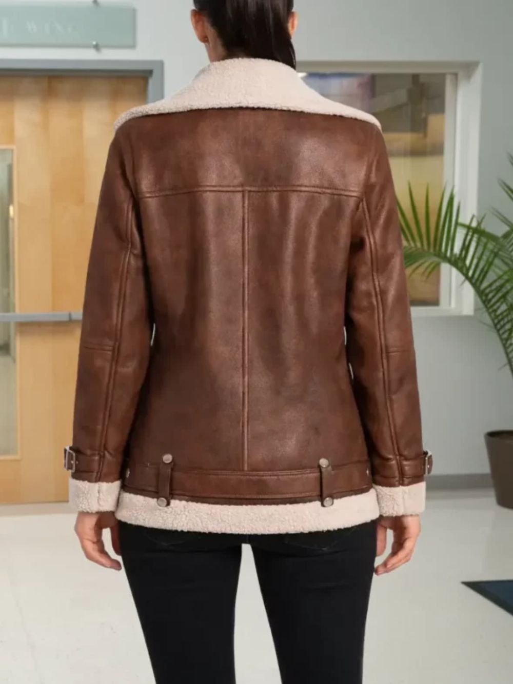 And you can do just that by wearing this stylish General Hospital Eden McCoy Shearling Jacket over your favorite outfit to look good this winter season. The idea for this jacket is taken from an American romance, crime, and drama soap opera called General Hospital. This jacket was worn by one of the featured characters of the show named Josslyn Jacks. The role of Josslyn Jacks is played by an American actress named Eden McCoy. This Josslyn Jacks-inspired jacket by Movie Jackets Hub has a beautiful toned-down brown color and is made from the best genuine leather material to make sure it can last many years for you. We have made this Eden McCoy General Hospital Josslyn Jacks Brown Leather Shearling Jacket warm and comfortable to wear. We did it by fitting a soft Faux Fur Lining and Real Shearling Fur lining inside it. This jacket is decorated on the front with a zipper for closure that makes it easy to wear. This leather jacket has a lapel-style collar that makes it stand out from the crowd. This leather jacket has long sleeves that are fitted with open hem style cuffs and has two side pockets and two inner pockets to keep your stuff.