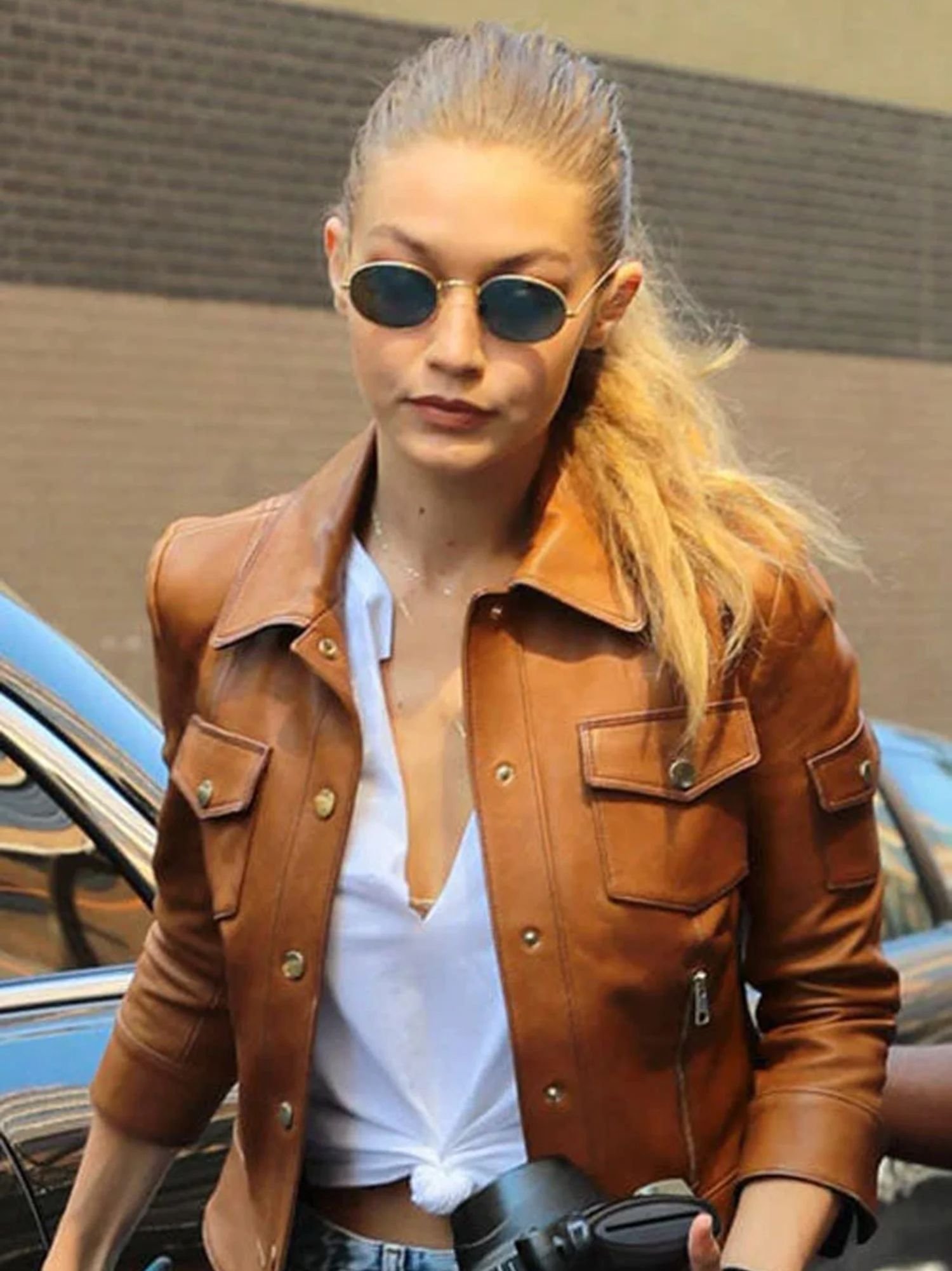 The evening light filters through the high-rises of Tribeca, casting a golden glow over a look that is as calculated as it is effortless. She isn’t just wearing a jacket; she is defining a silhouette. Inspired by the sharp, architectural, and perpetually trend-setting “off-duty” style of Gigi Hadid, this Brown Slim-Fit Leather Jacket is a masterclass in modern minimalism. While others chase fleeting fast-fashion, Gigi’s personal wardrobe anchors itself in the classics elevating the everyday with high-end textures and a tailored precision that commands the sidewalk. This piece is for the woman who finds power in a clean line and a rich, earthy palette.