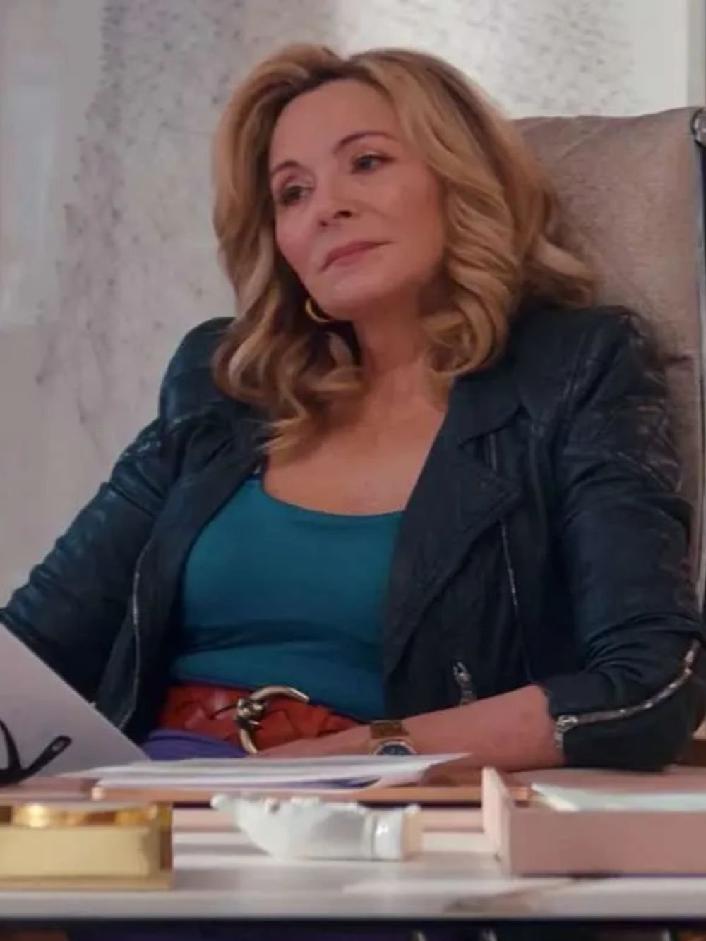 Kim Cattrall Tv Series Glamorous 2023 Madolyn Addison Black Diamond Quilted Leather Jacket