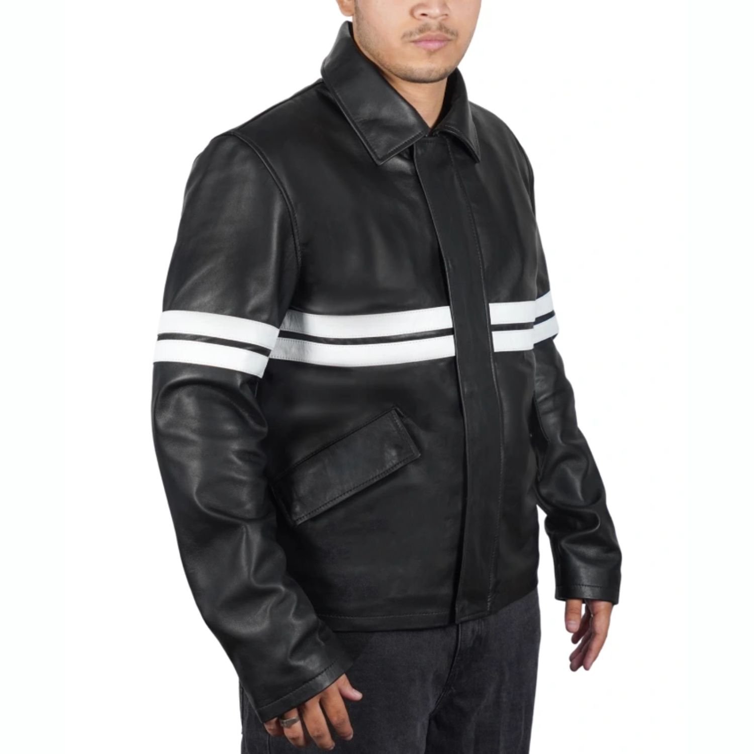 Matt Damon 1997 Movie Good Will Hunting Will Black Stripes Leather Jacket