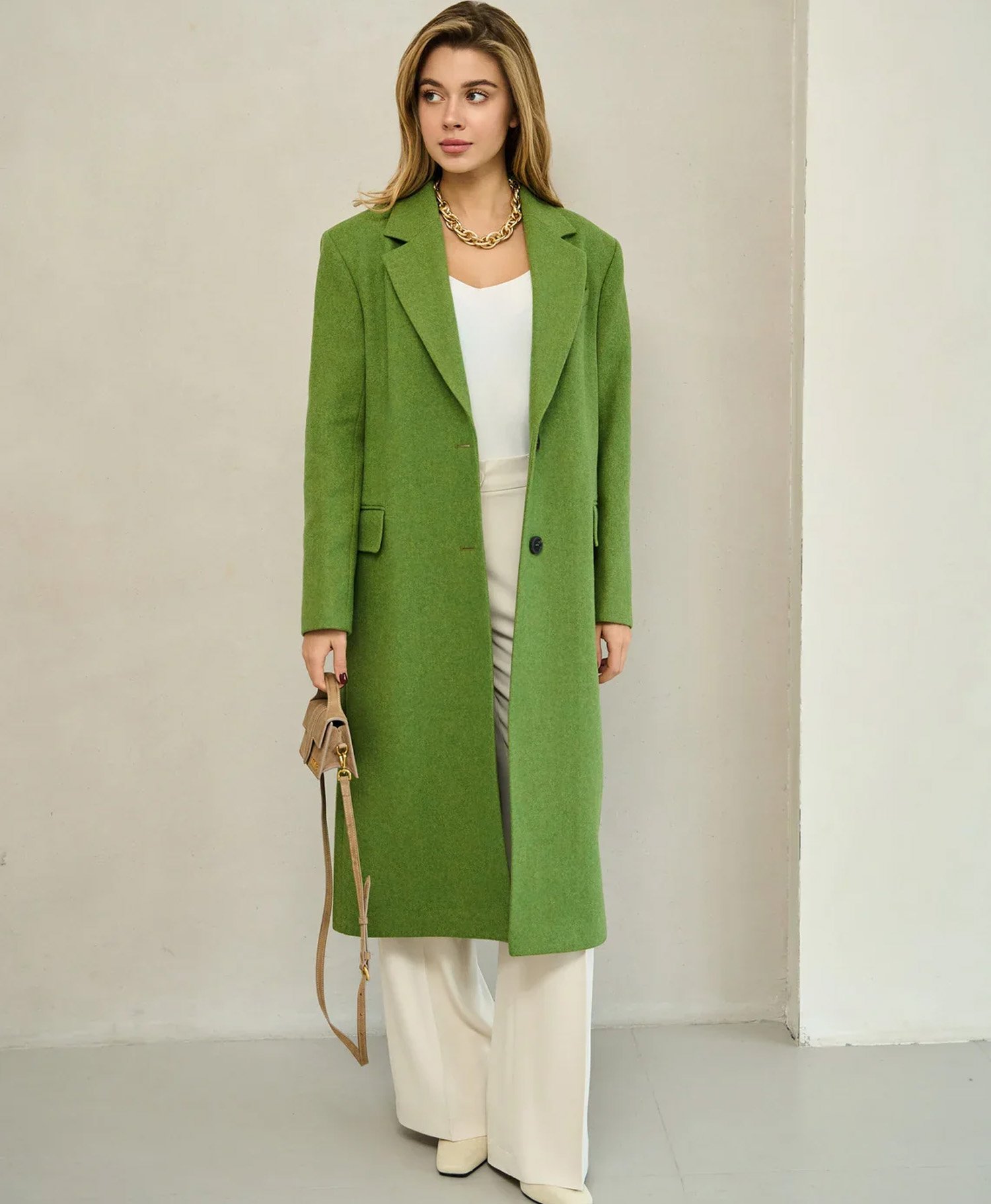 Grass Green Long Wool Coat