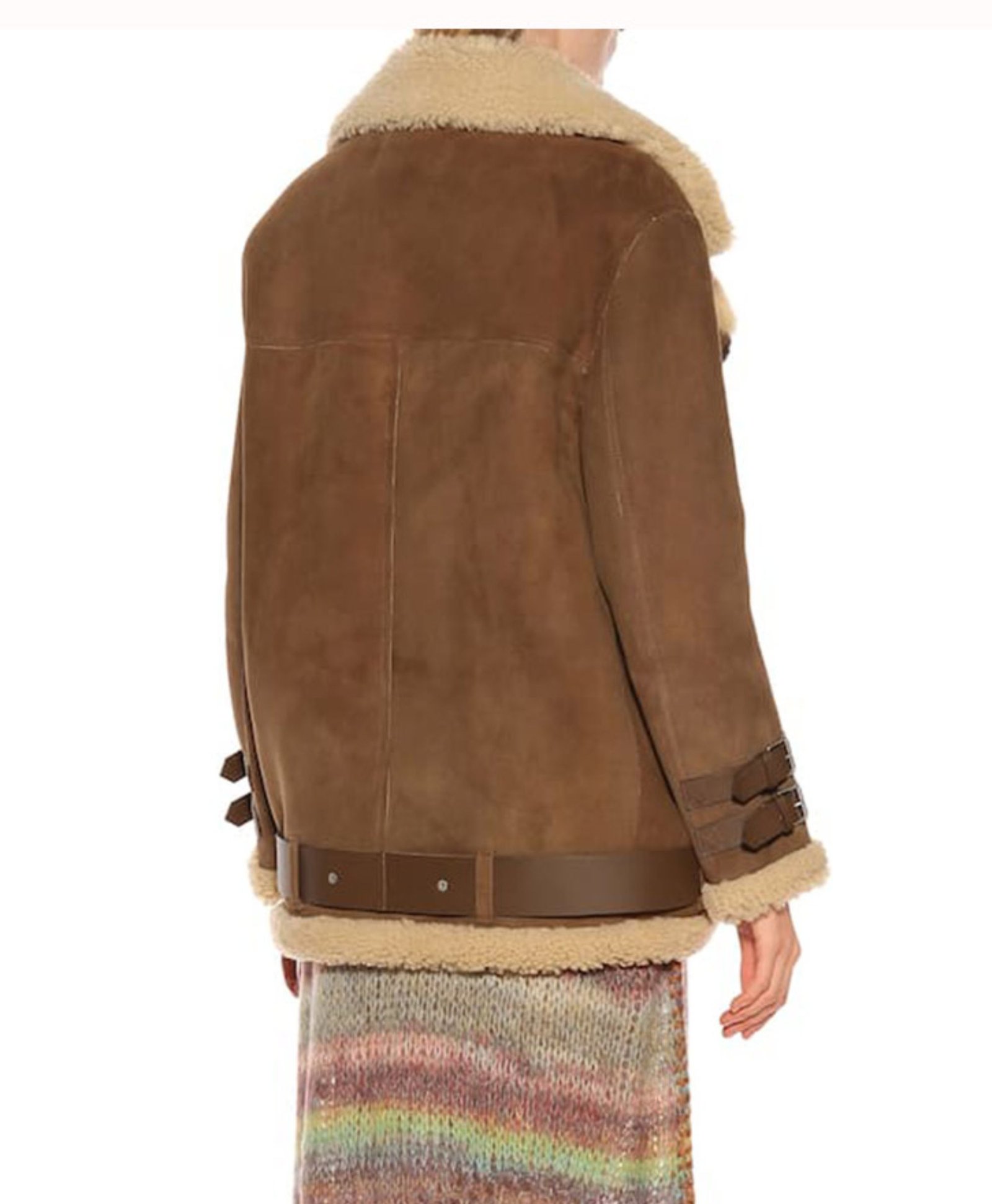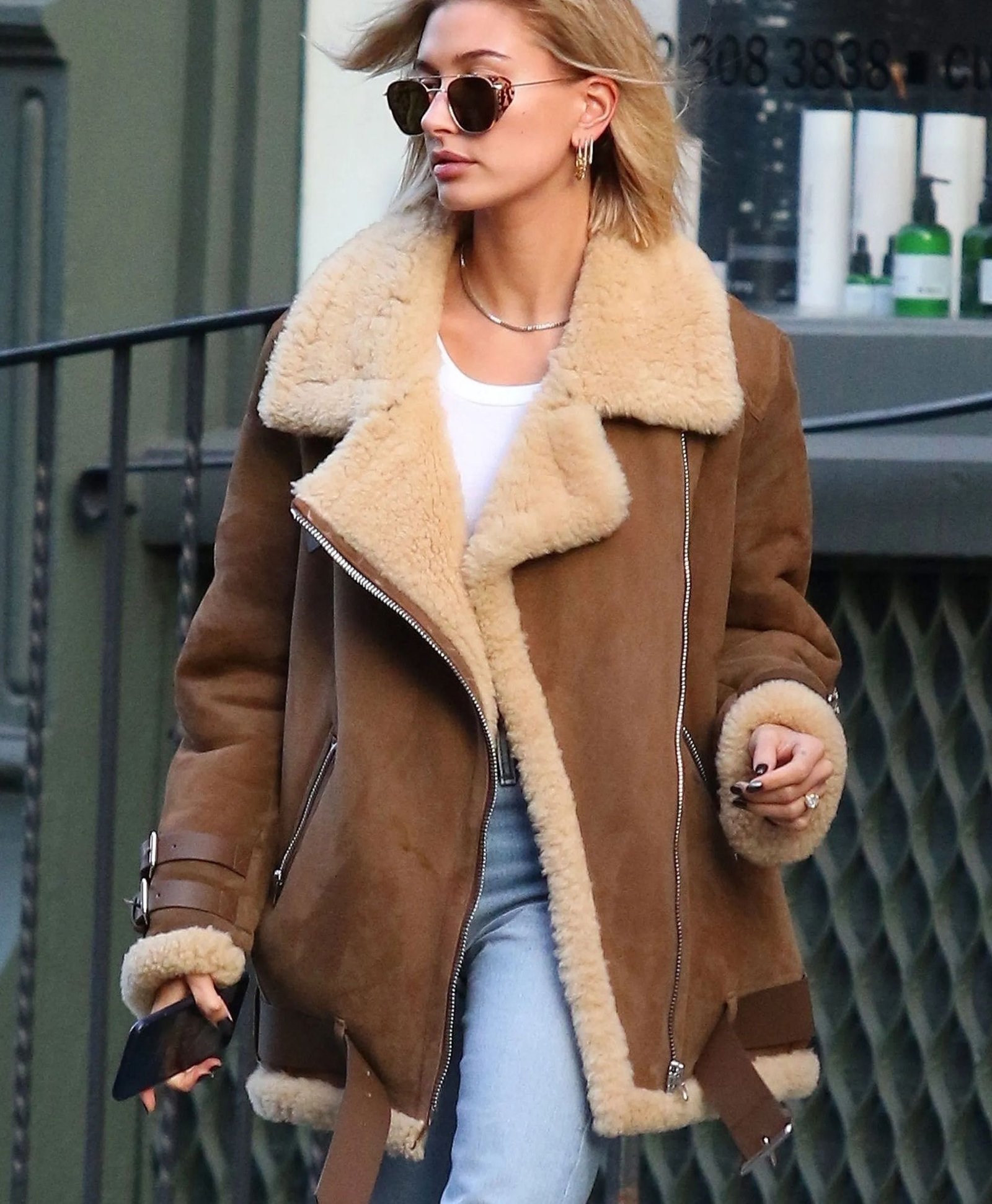 Hailey Baldwin Velocite Suede Leather Brown Shearling Jacket