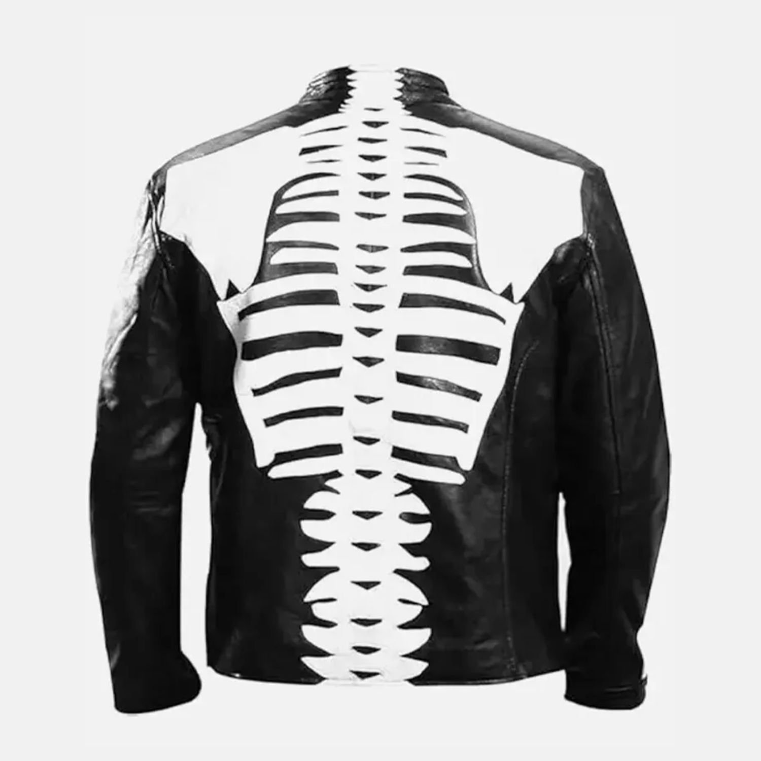 Men’s and Women’s Skeleton Printed Halloween Special Black Real Leather Jacket