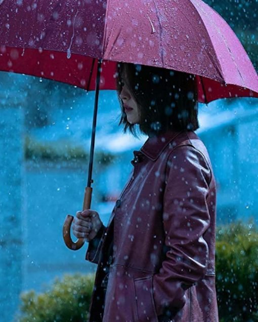 Han So Hee TV Series My Name 2021 Ji-u Yun Maroon Leather Coat