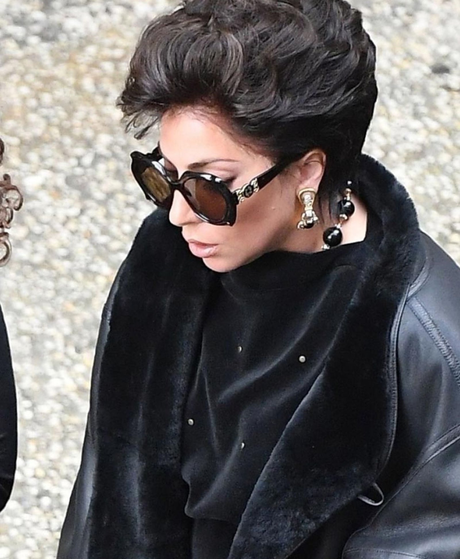 Lady Gaga House of Gucci 2021 Patrizia Reggiani Black Shearling Fur Leather Coat Jacket