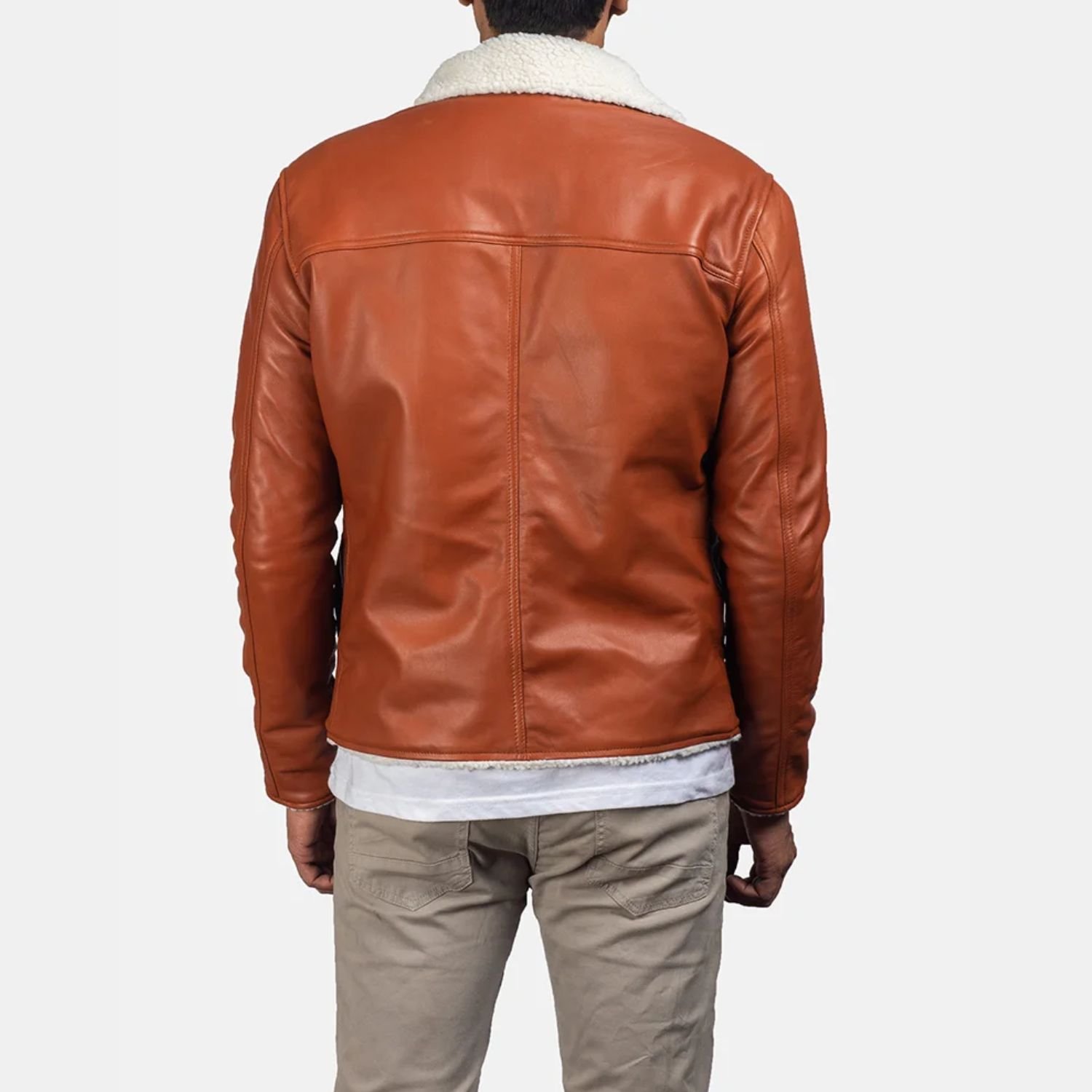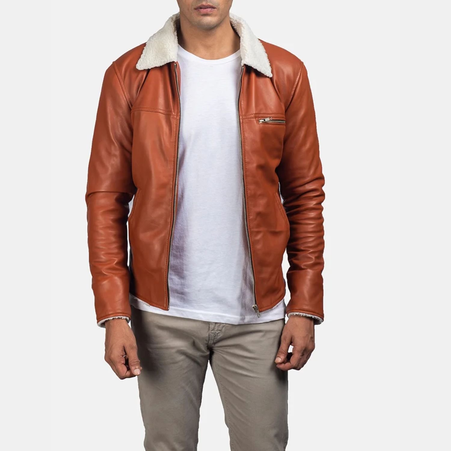Howard Tan Brown Shearling Fur Collar Warm Genuine Leather Jacket