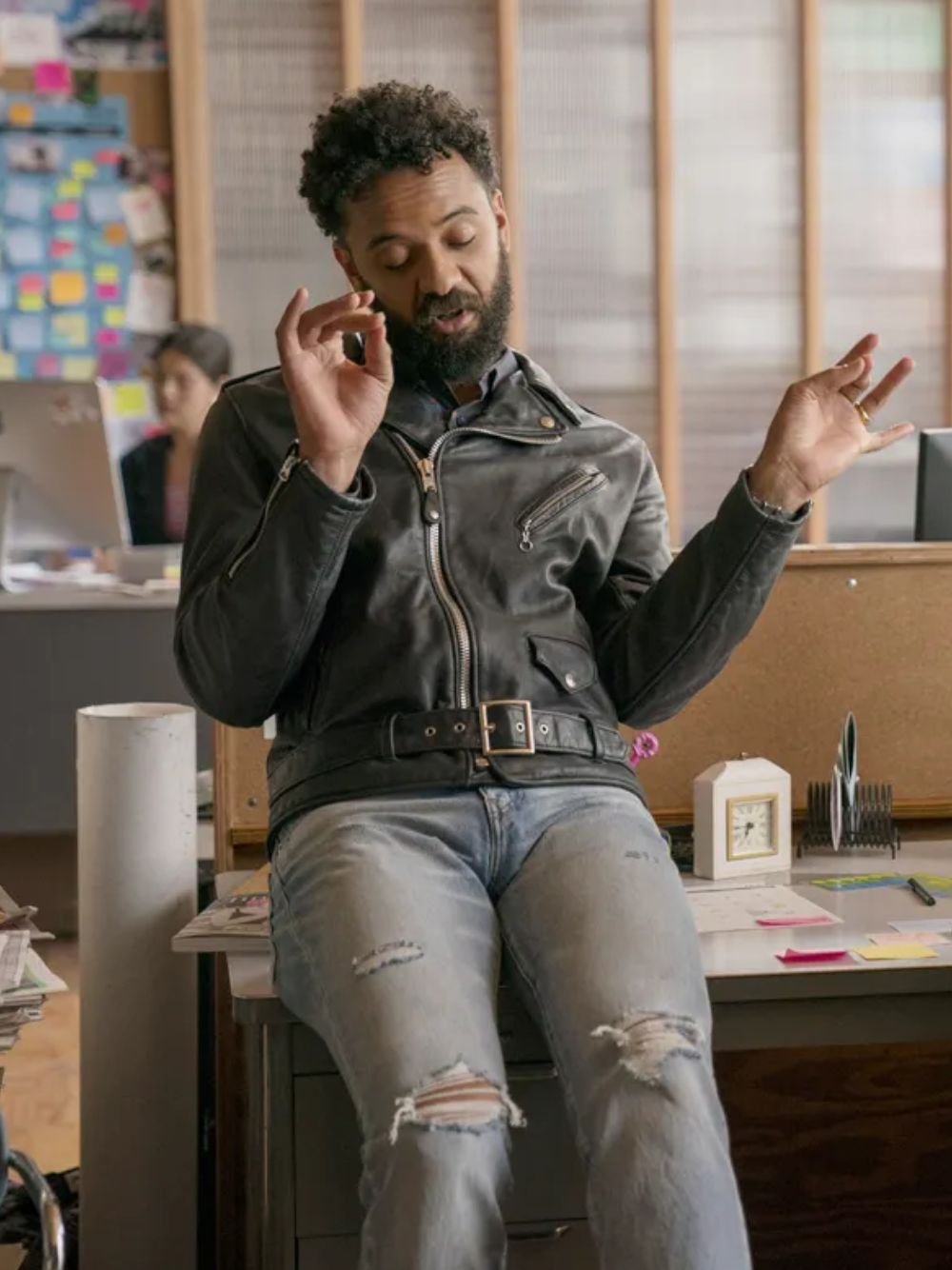 Amadi is one of the main characters in the Shrill TV series. He works at a video game design company and wants to create games that allow people to imagine and dream and have all sorts of minorities represented as protagonists. He was spotted wearing this Ian Owens Shrill Black Leather Jacket by Movie Jackets Hub in the show.