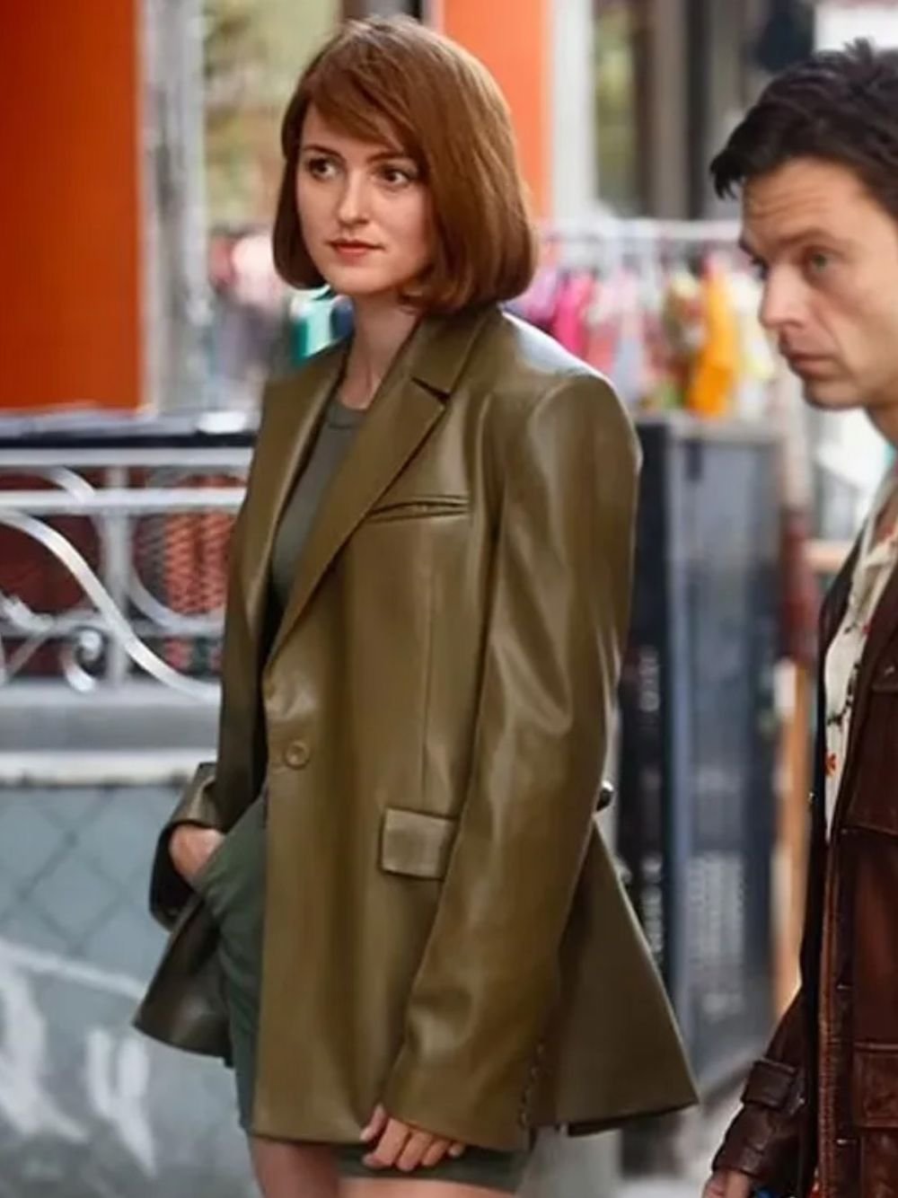Renate Reinsve A Different Man Movie 2024 Olive Green Leather Jacket