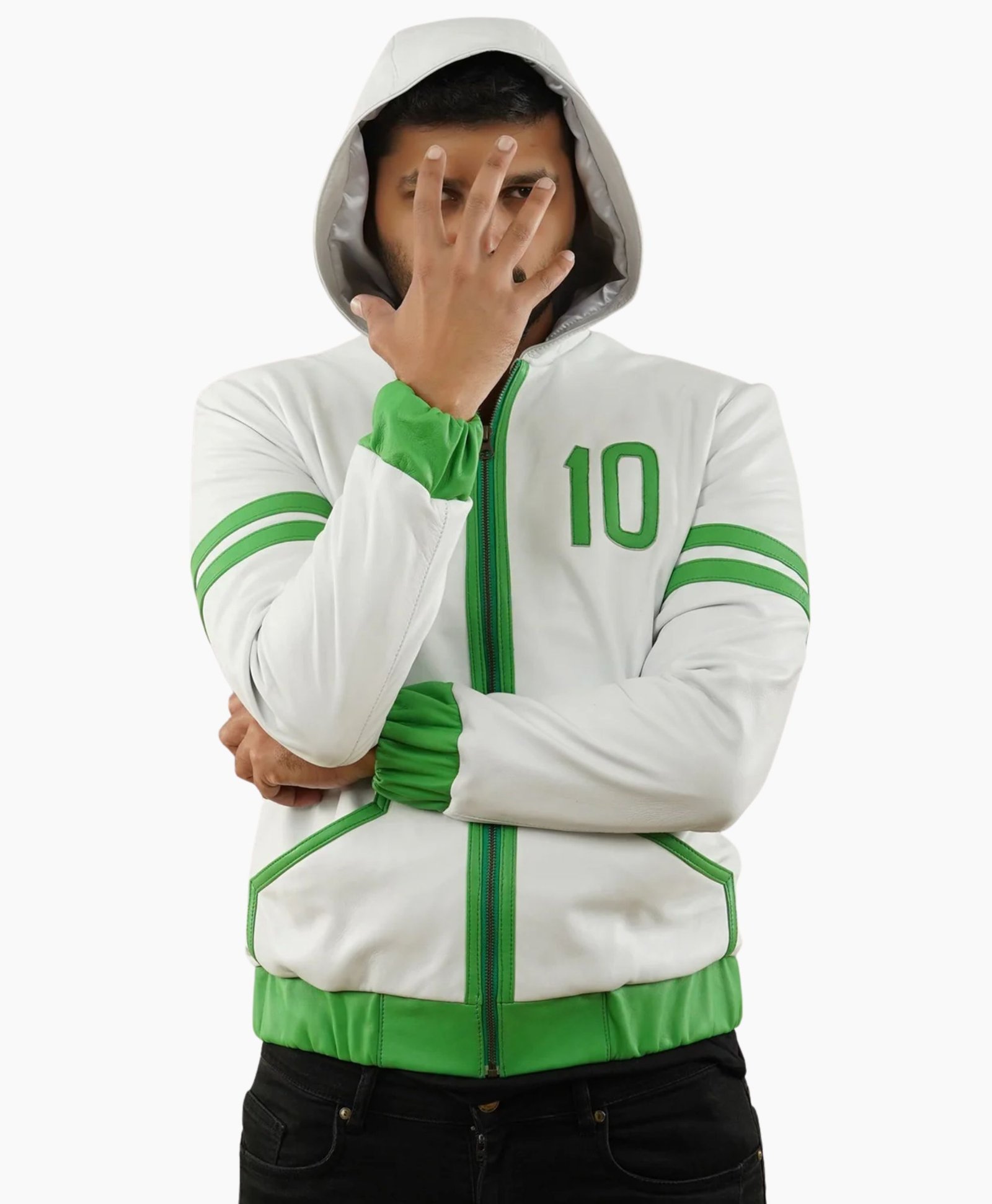 Inspired Ben 10 Omniverse Green and White Hooded Leather Jacket