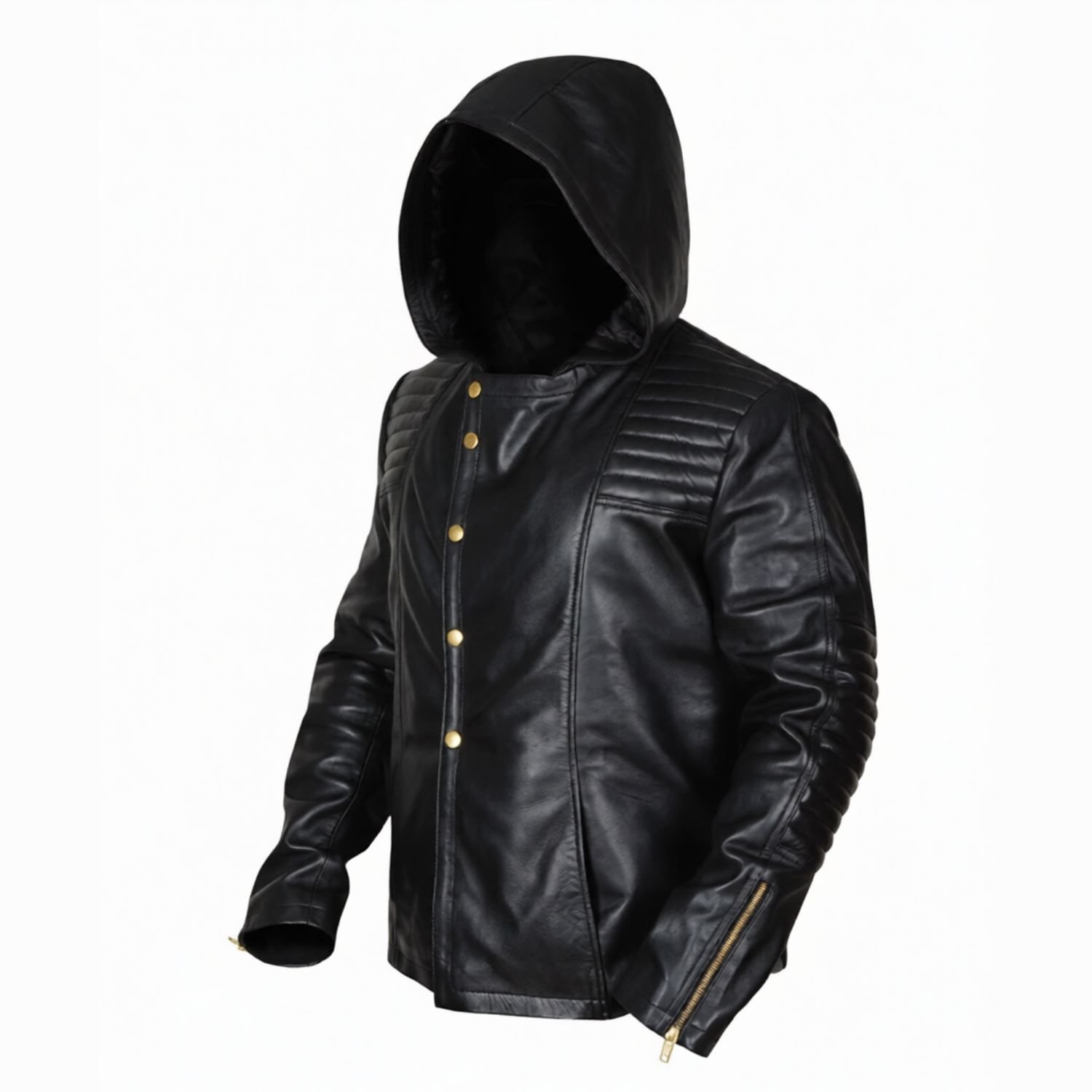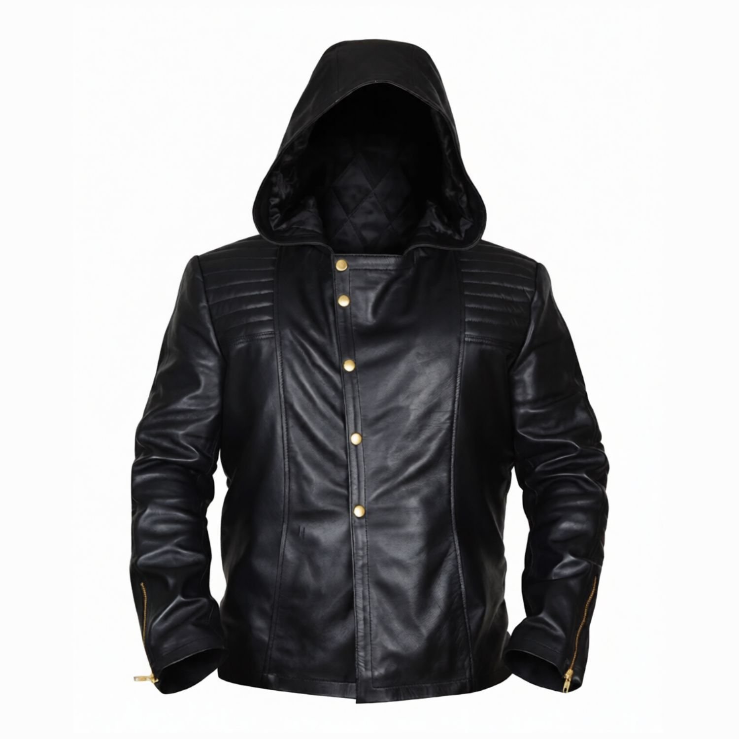 Black Hooded Leather Jacket
