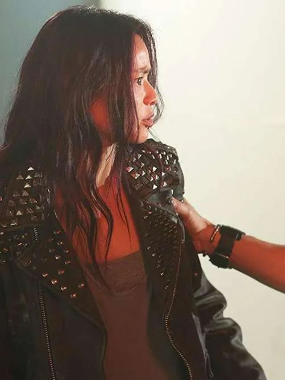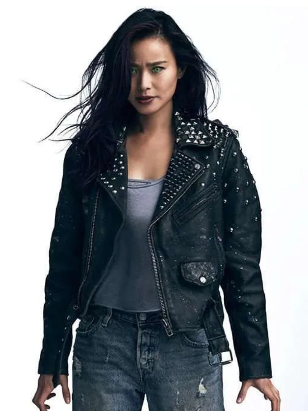 Jamie Chung TV Series The Gifted Blink Studded Biker Black Leather Jacket