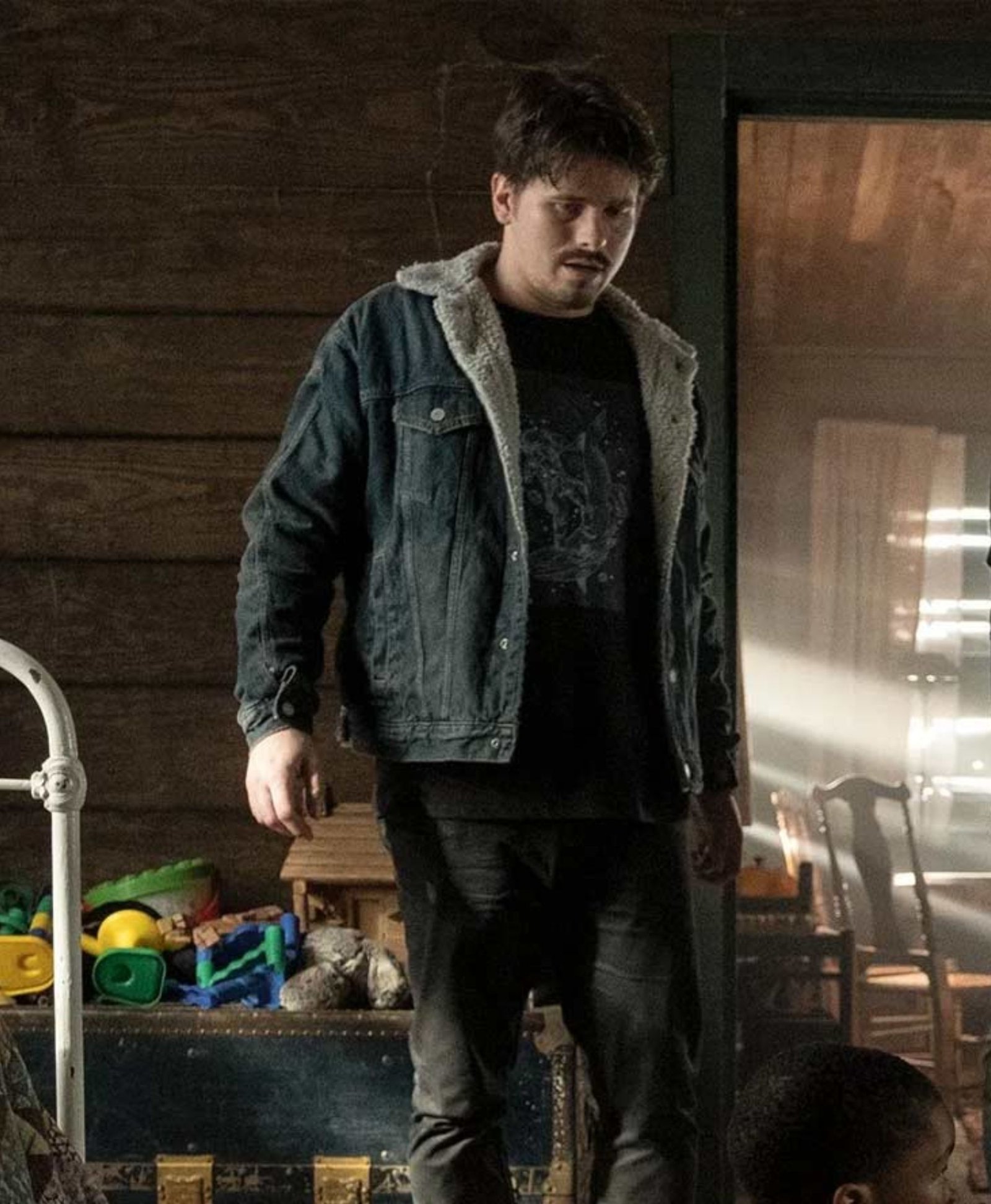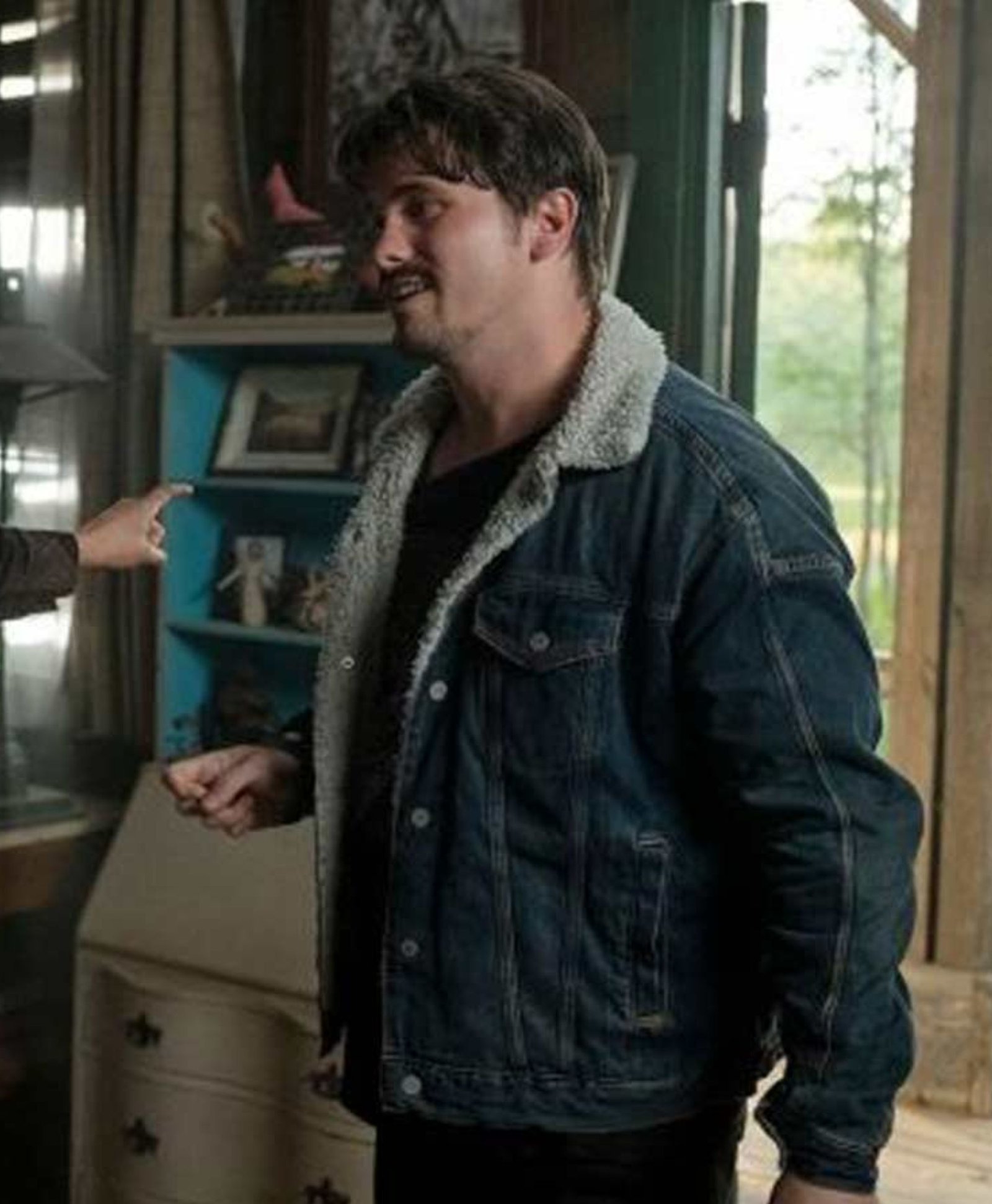 Jason Ritter Raising Dion Pat Rollins Denim Sherpa Fur Blue Trucker Jacket