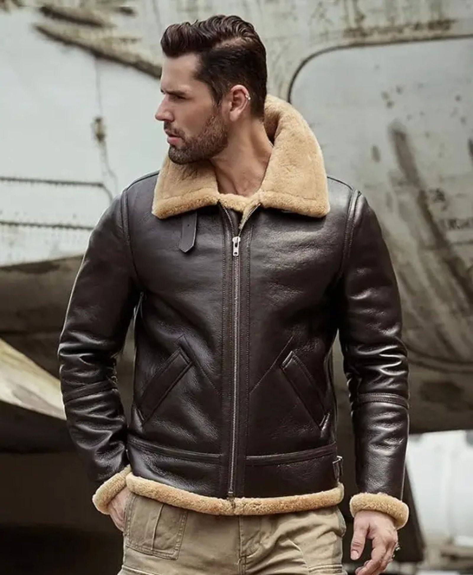 Made from genuine sheepskin leather, this jacket by Movie Jackets Hub showcases expert craftsmanship with a rich, smooth texture that feels luxurious and long-lasting. The interior is fully lined with soft shearling fur, providing exceptional insulation and comfort during cold weather. Designed in a classic B3 bomber style, it offers a bold, masculine silhouette that never goes out of trend.