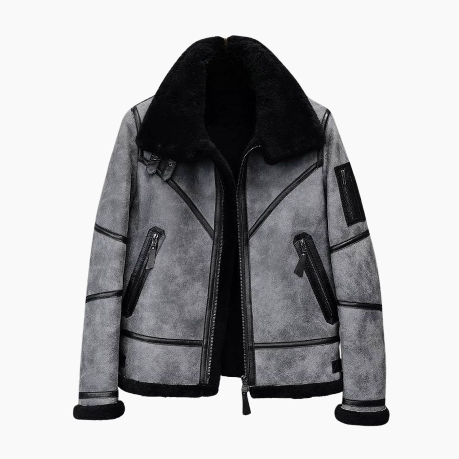Beneath the resilient grey-black leather exterior lies an impenetrable sanctuary of warmth, featuring a full lining of plush, genuine shearling fur. This natural wool lining is a world-class thermal regulator, specifically engineered to trap and retain body heat in extreme sub-zero conditions while remaining breathable enough to prevent overheating. The design is centered around a grand spread-style fur collar, which provides a soft, insulating barrier for the neck and lower face against biting winter gales. This luxurious shearling extends to the round cuffs, creating a high-contrast visual detail that perfectly complements the dark, tonal leather shell. This “double-faced” construction ensures maximum thermal protection without the need for excessive, bulky layers, allowing you to maintain a sharp, athletic silhouette.