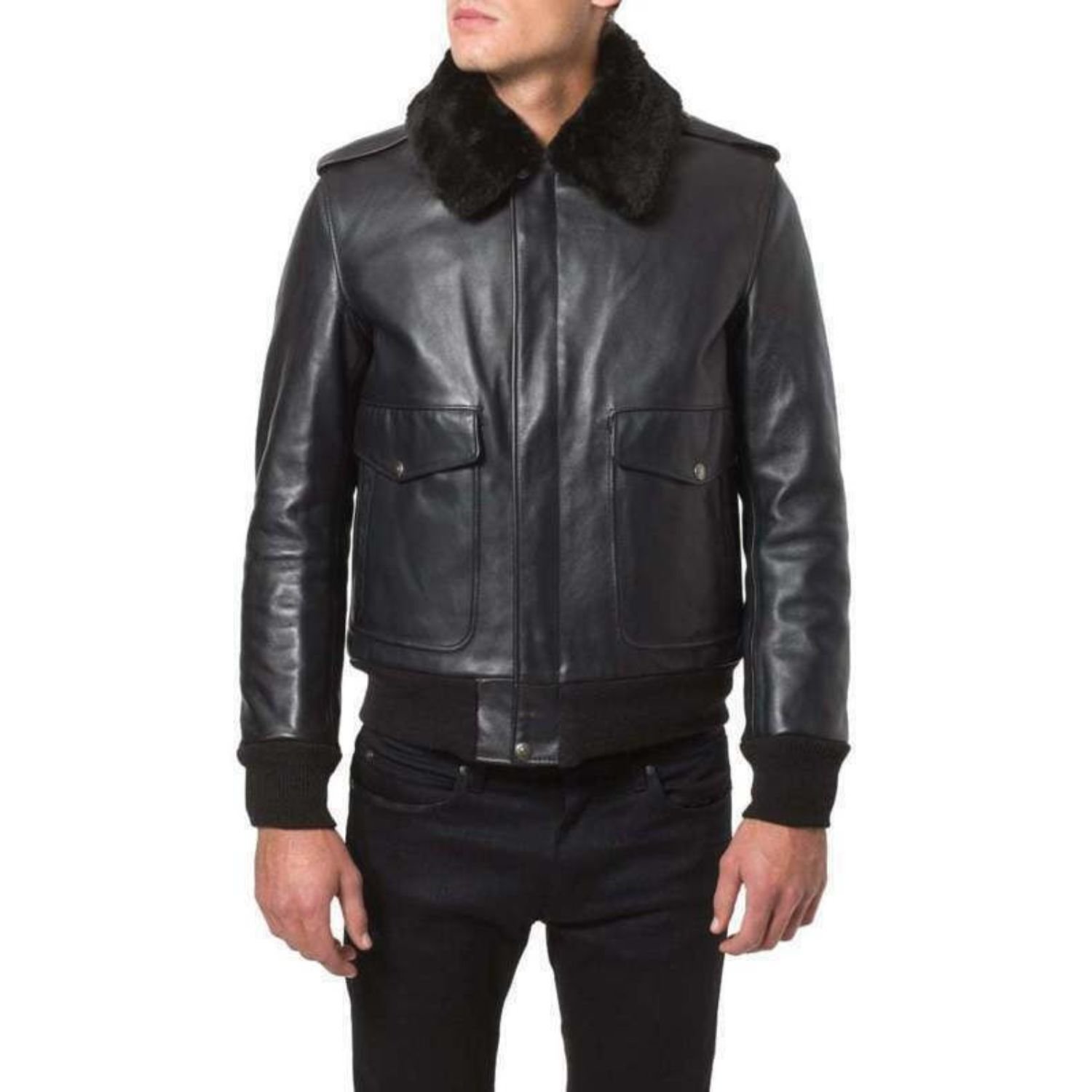 Mens and Womens Jethro Black Leather Bomber jacket For Sale