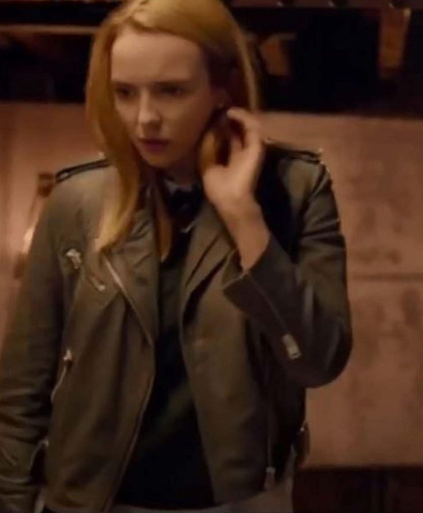 Jodie Comer Killing Eve Season 04 Villanelle Motorcycle Brown Leather Jacket