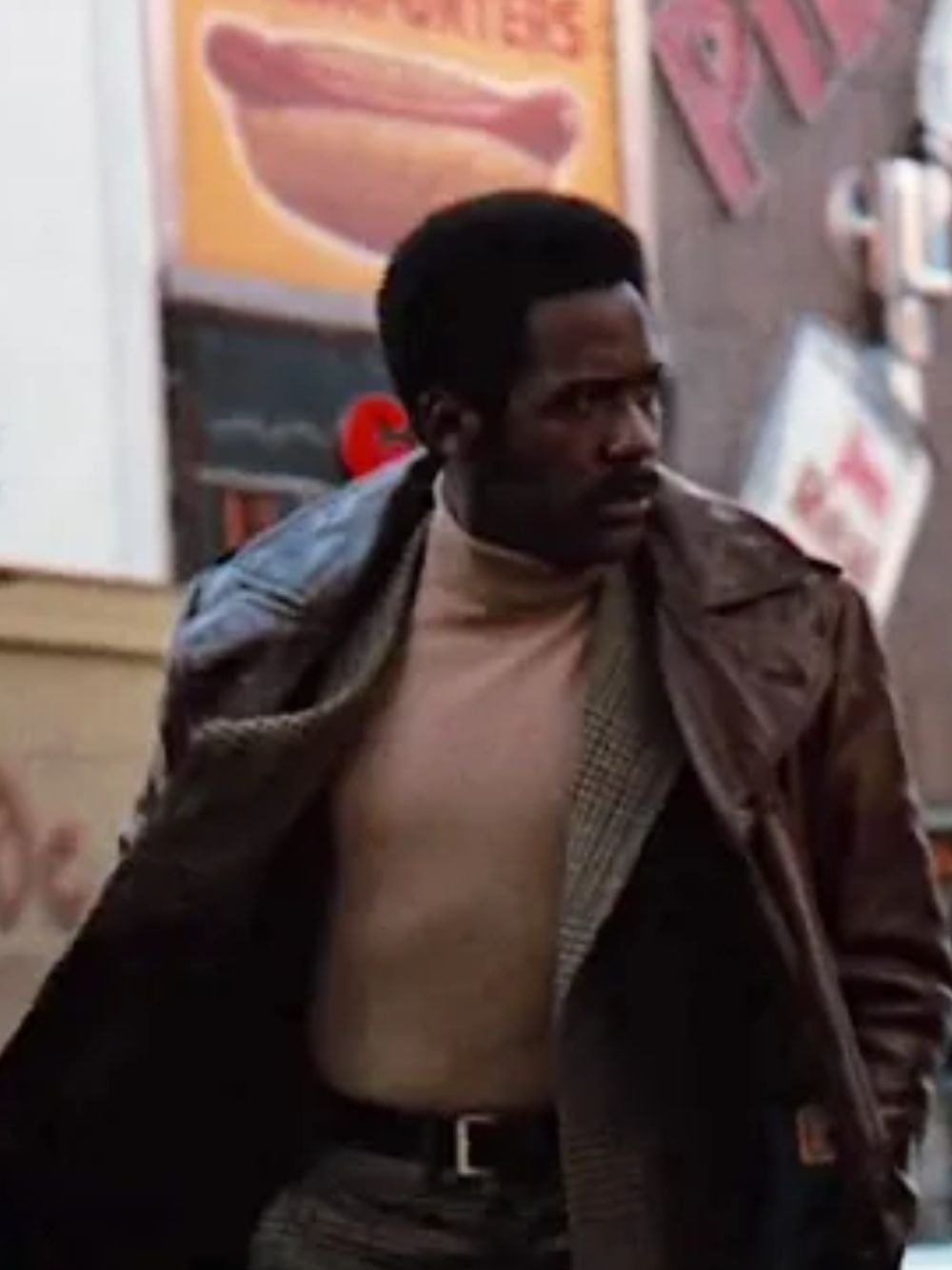 Richard Roundtree John Shaft 1971 Double Breasted Long Brown Leather Trench Coat