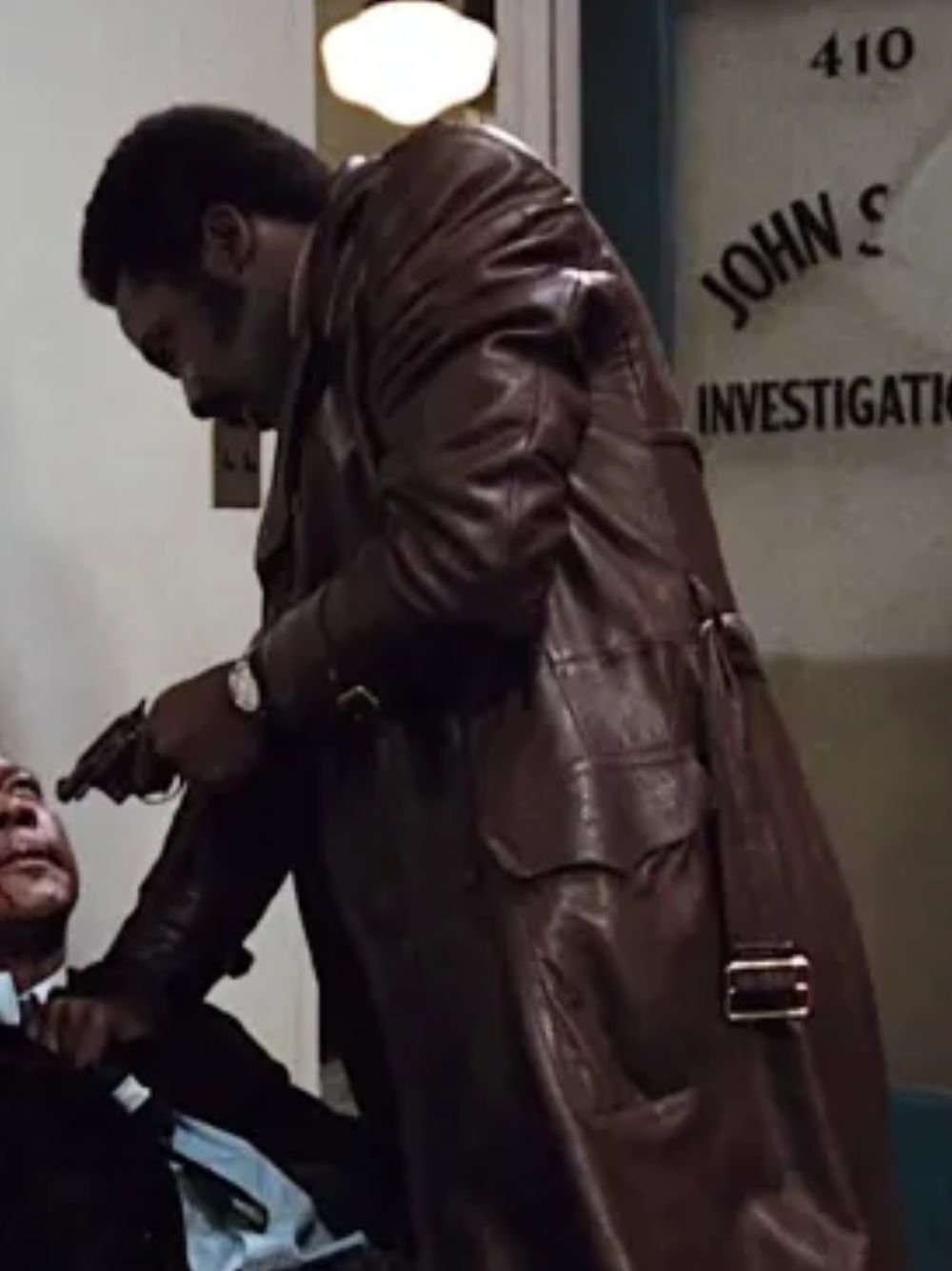John Shaft 1971 Brown Leather Trench Coat
