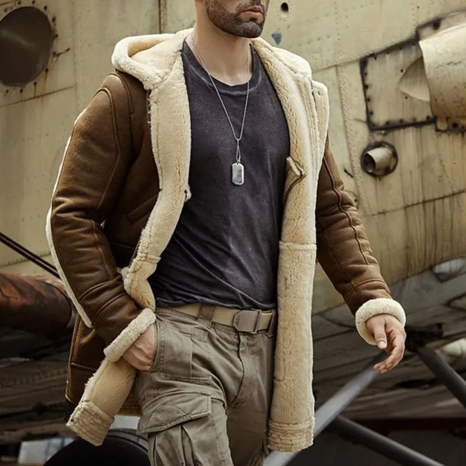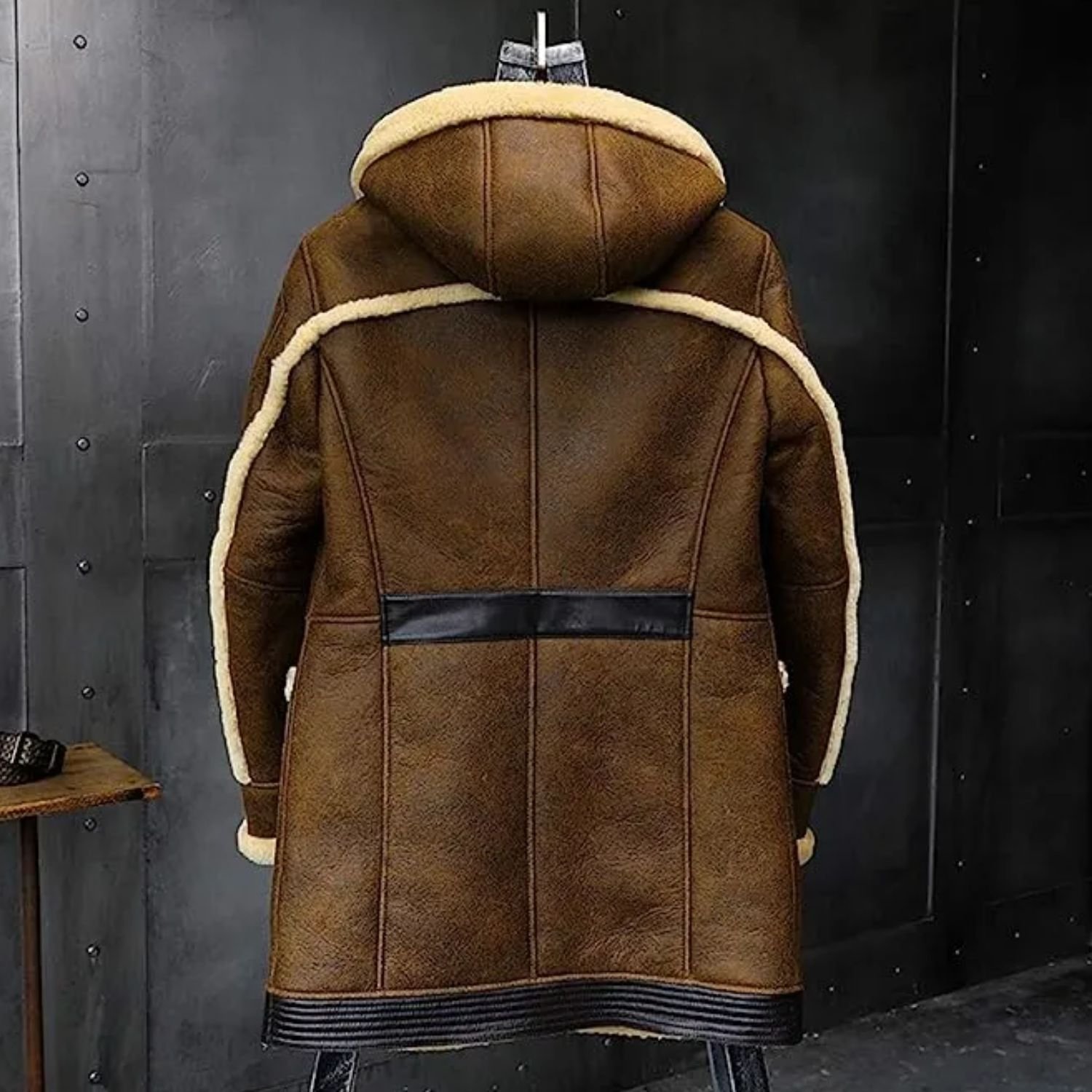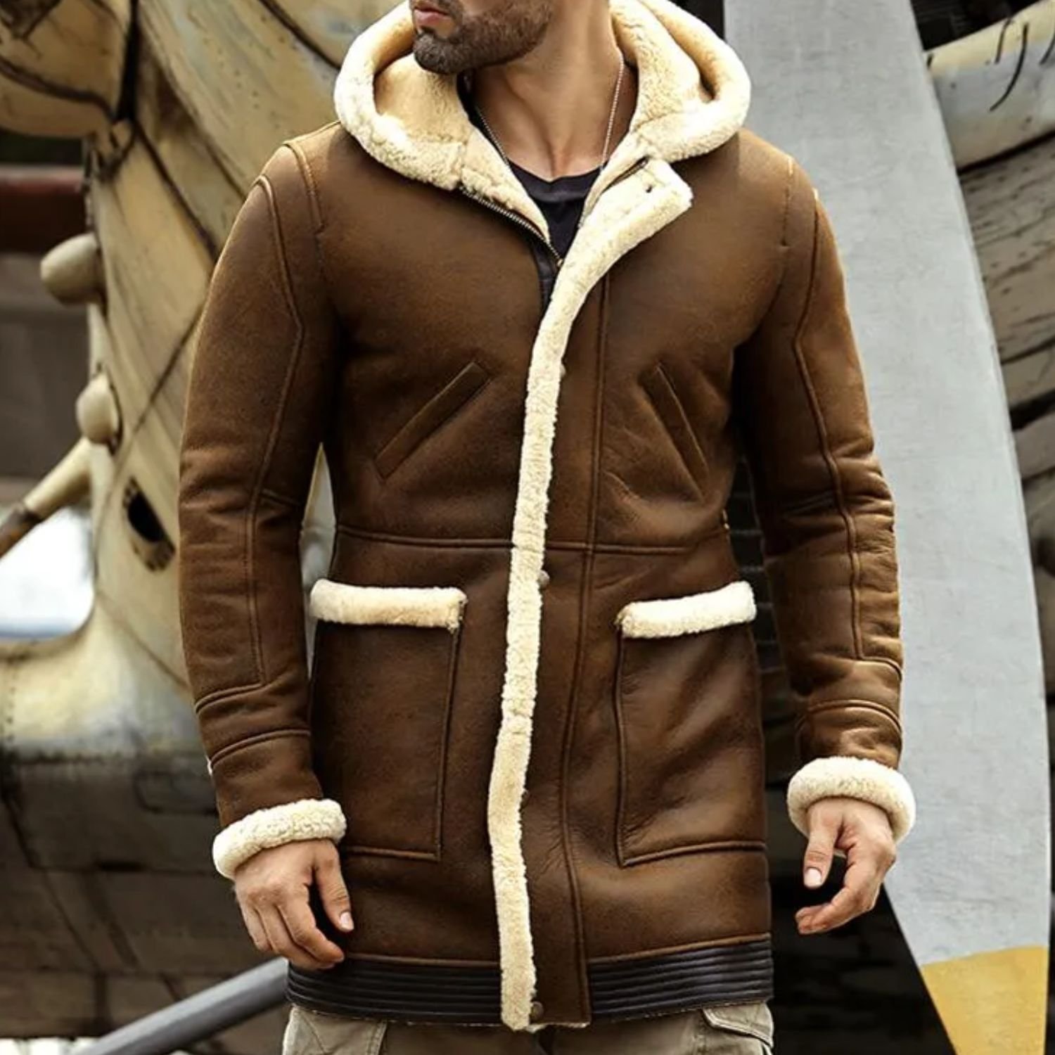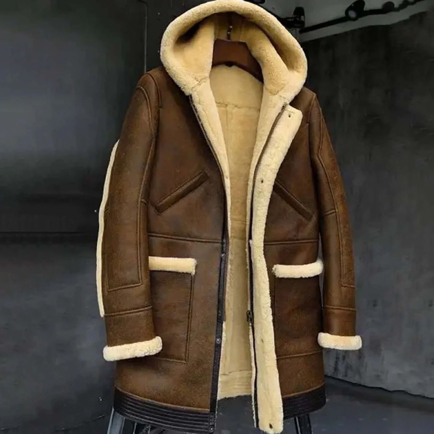 Mens Joshua Brown Soft Shearling Fur Hooded Leather Jacket