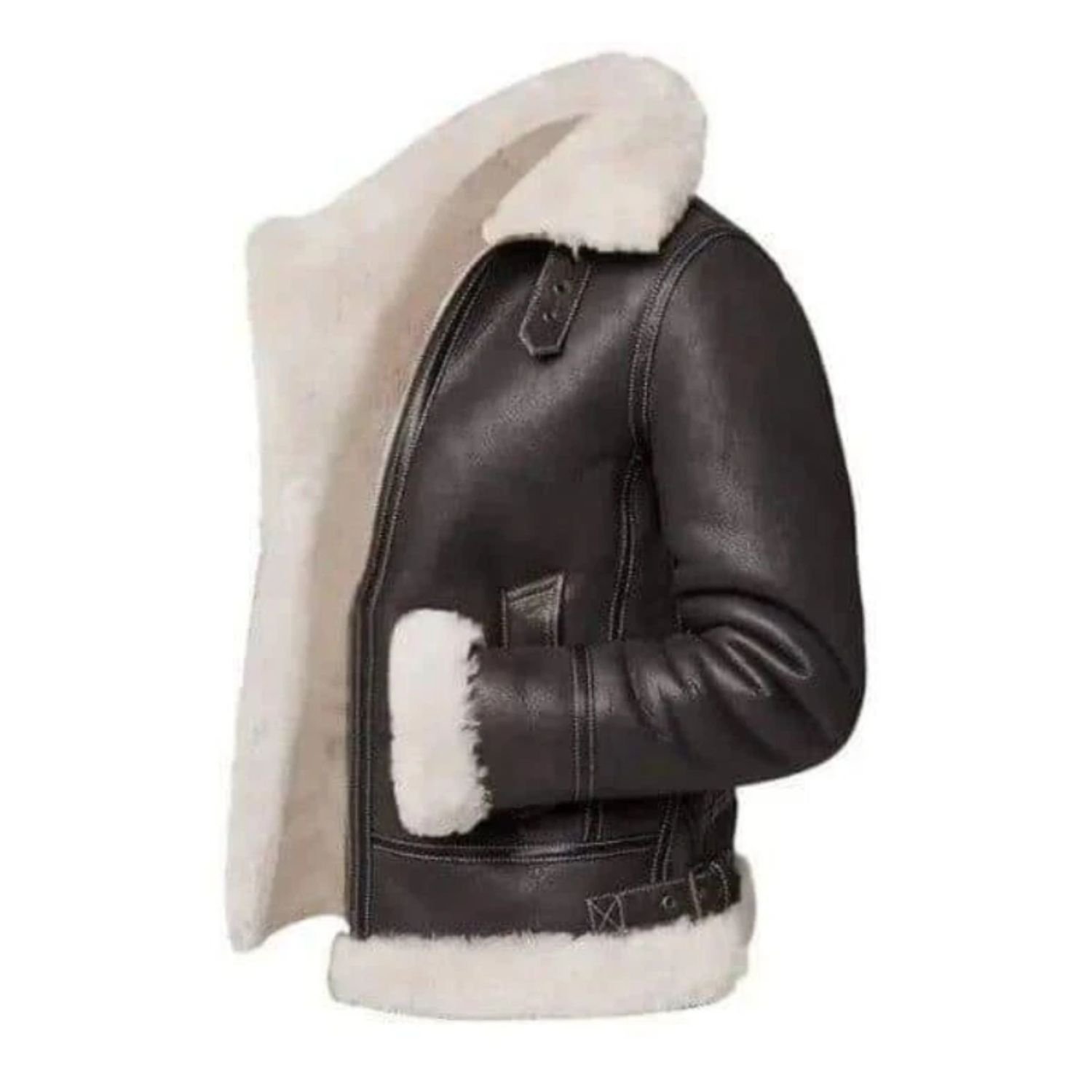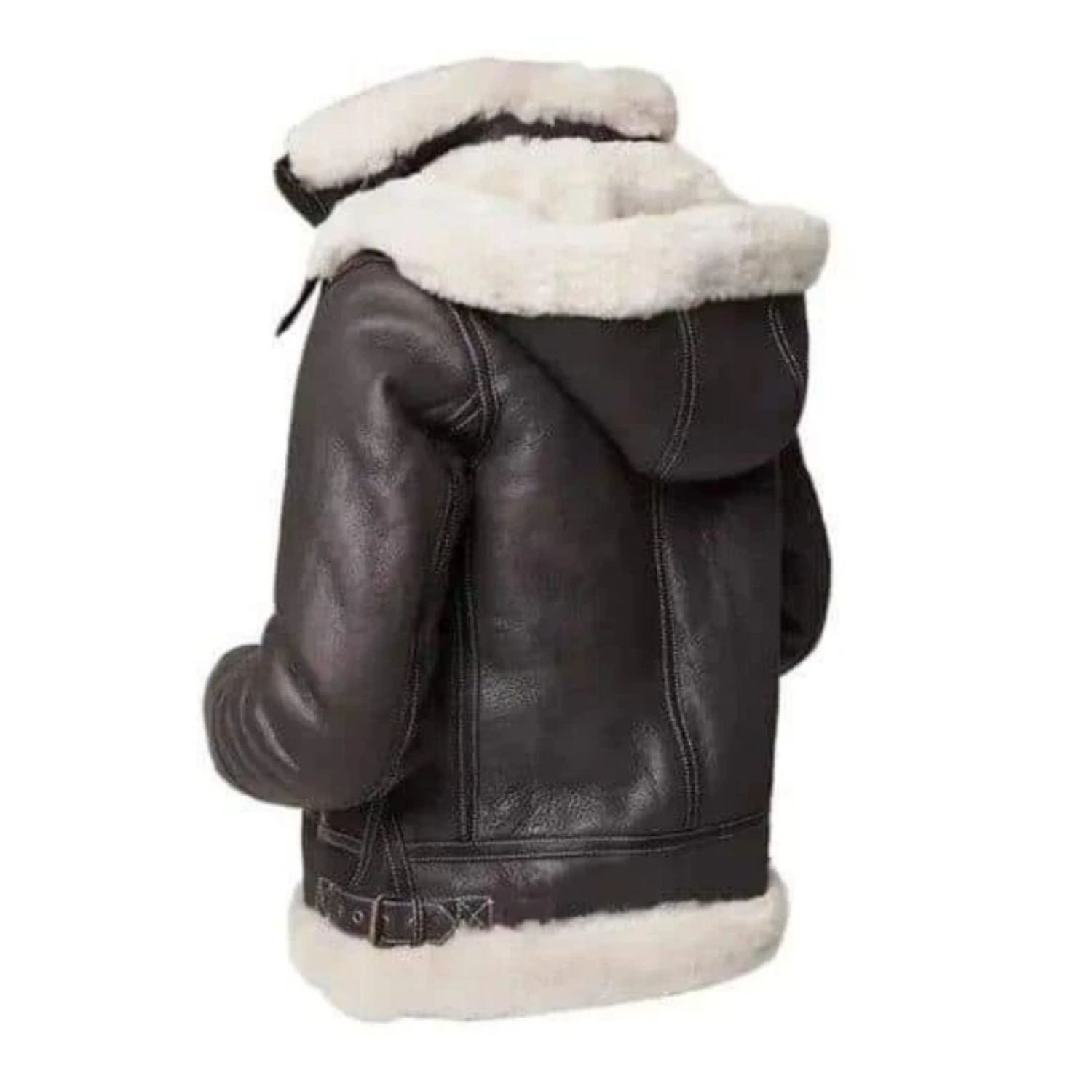 Karen-SF Aviator Brown Fur Bomber Shearling women Leather Jacket with Detachable Hood is made from real sheep leather. Its interior is lined with real shearling fur. The YKK Zipper closure, shearling fur collar with a belt, and open hem cuffs with fur make the jacket a masterpiece. It is a highly recommended jacket from Movie Jacket .hub The stylish brown jacket is trending and is in high demand. So place your orders now!
