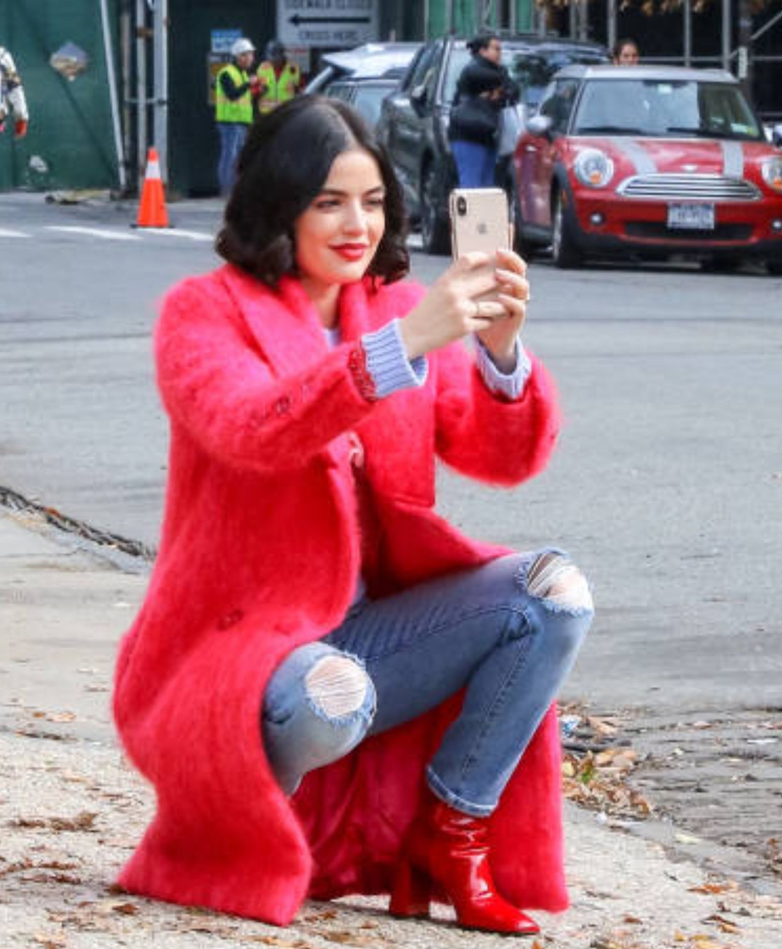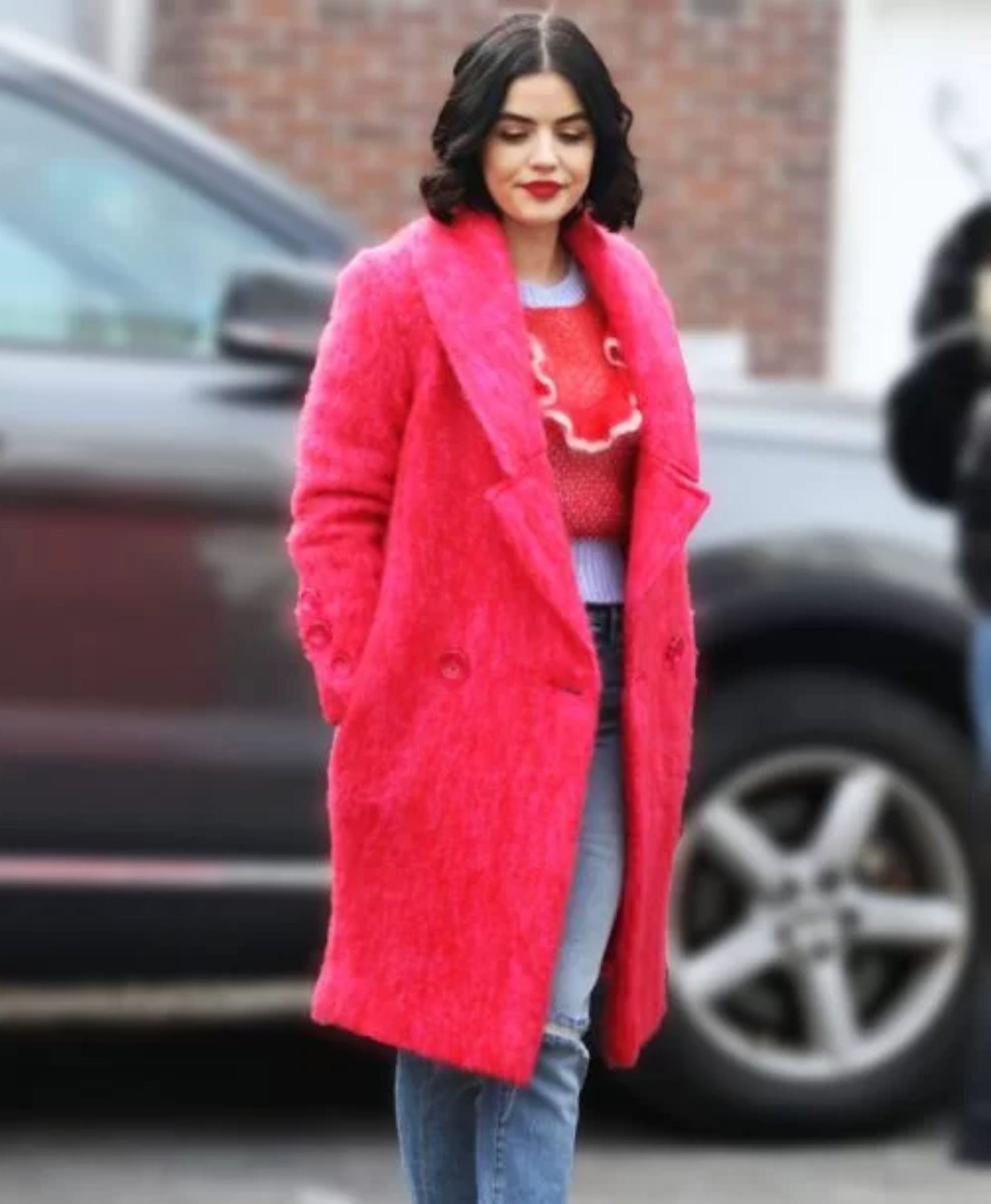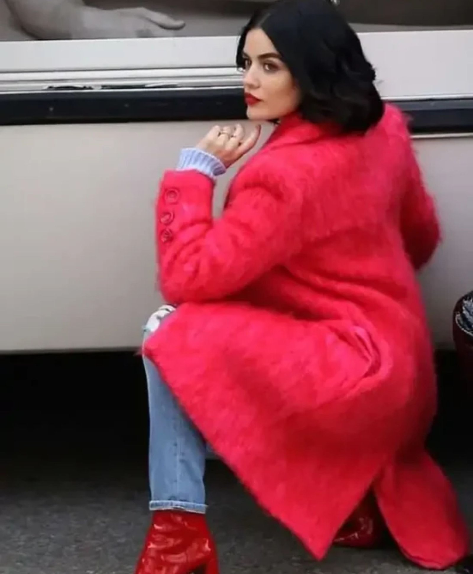 Lucy Hale Katy Keene Red Faux Fur Coat
