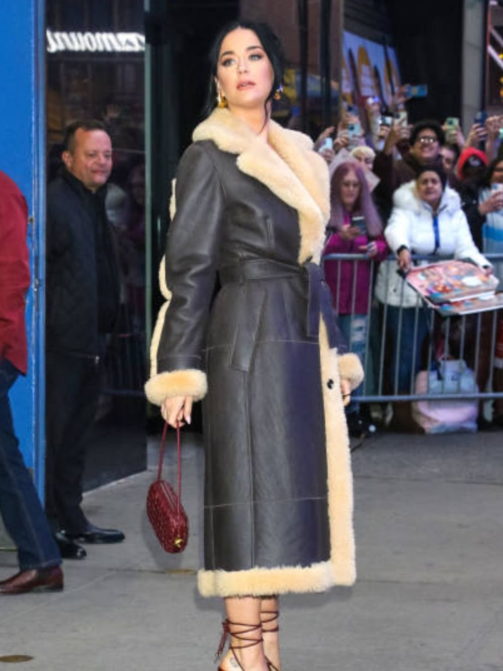 Katy Perry Good Morning America Studios Shearling Leather Coat