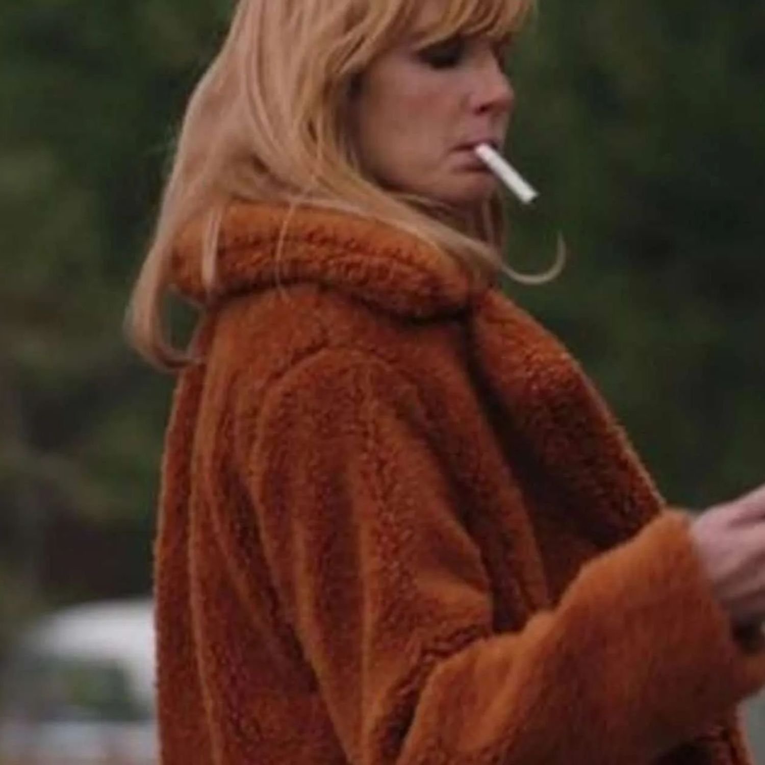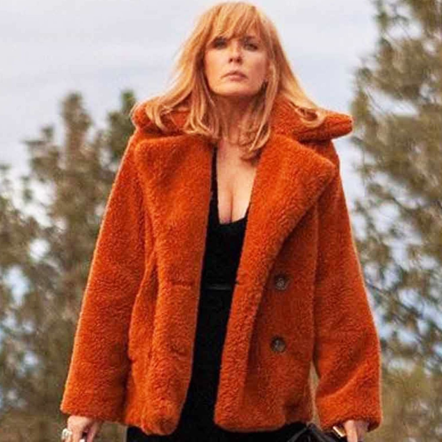 Undoubtedly, the professional designers at Movie Jackets Hub always come up with stunning outfits. Womens Orange Shearling Fur Pea Coat has become very famous from our recent launch collection. This orange fur peacoat has made its place in most women’s wardrobes within a short period.