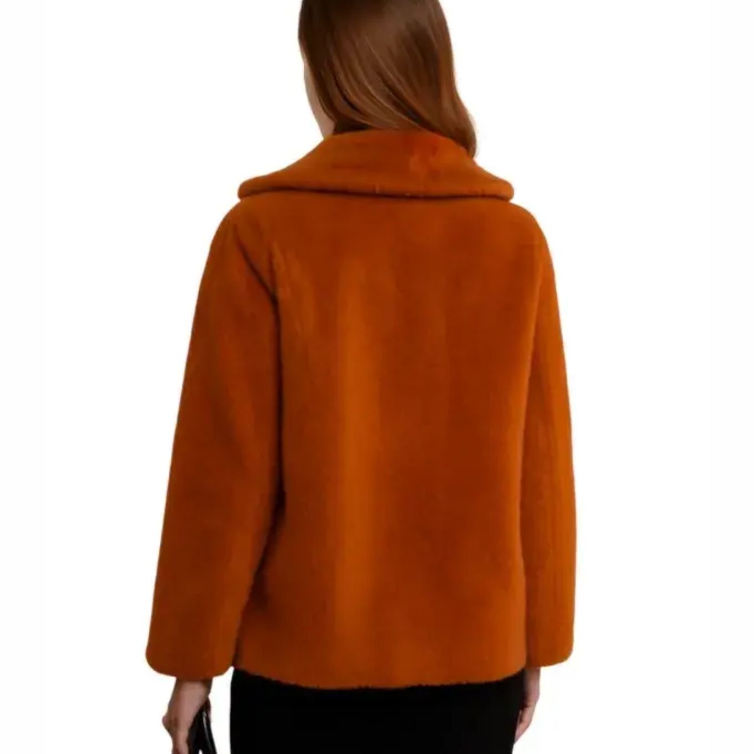 Kelly Orange Fluffy Soft Double Breasted Warm Shearling Fur Pea Coat Jacket