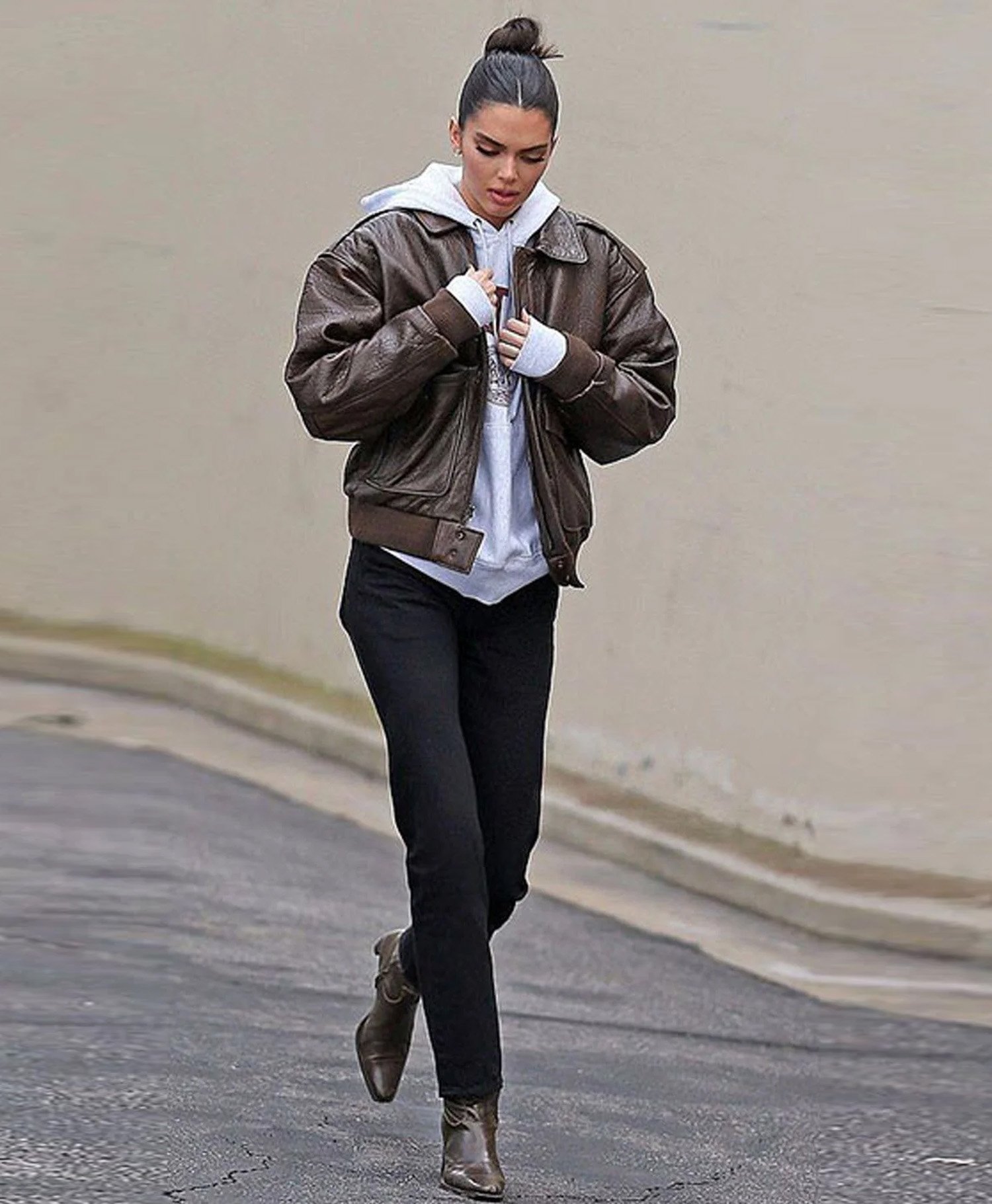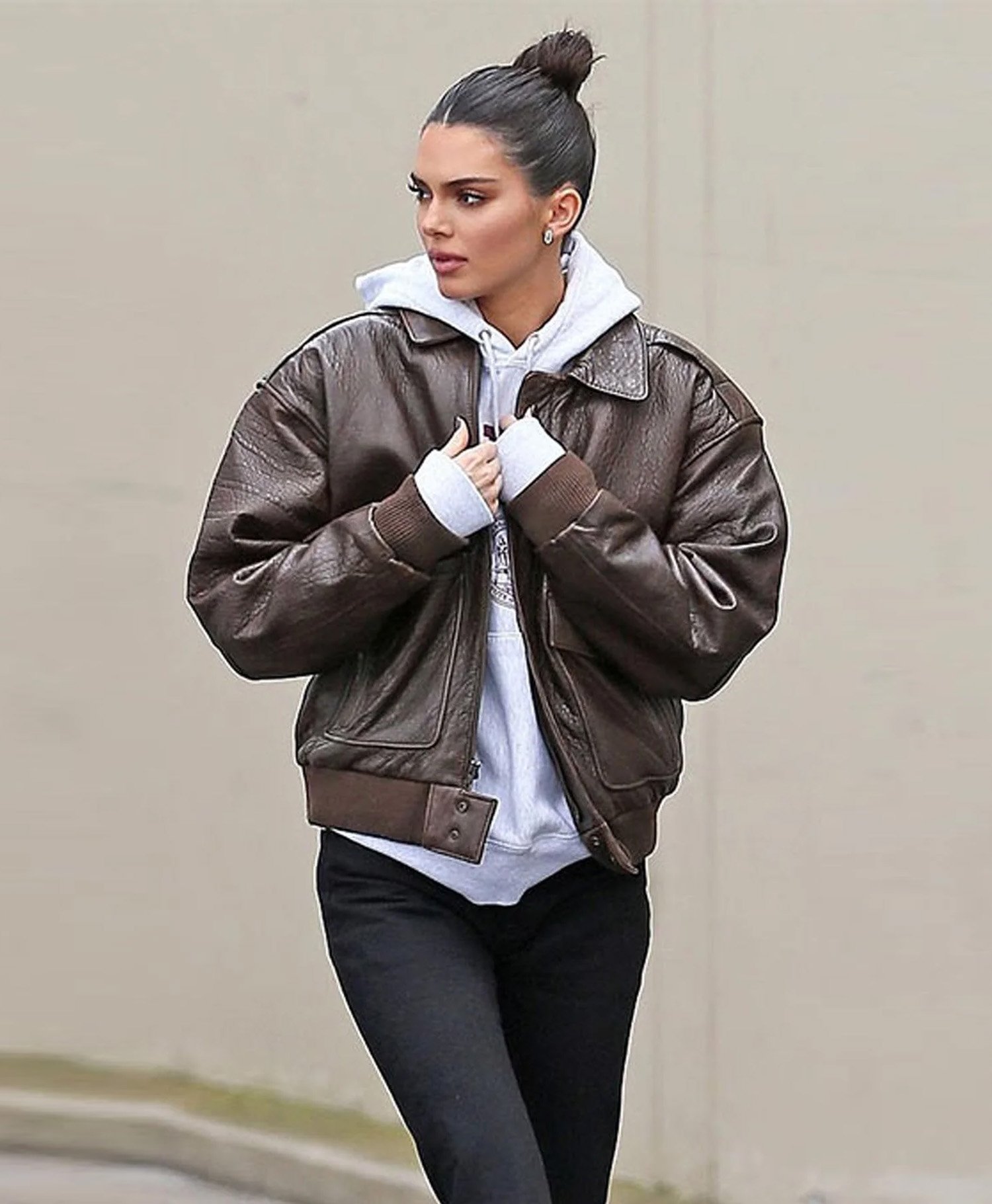 Channel Kendall Jenner’s effortlessly cool fashion sense with the Kendall Jenner Bomber Leather Jacket a perfect blend of luxury, comfort, and modern attitude. Inspired by the supermodel’s trendsetting street style, this jacket redefines casual wear with a premium touch.
