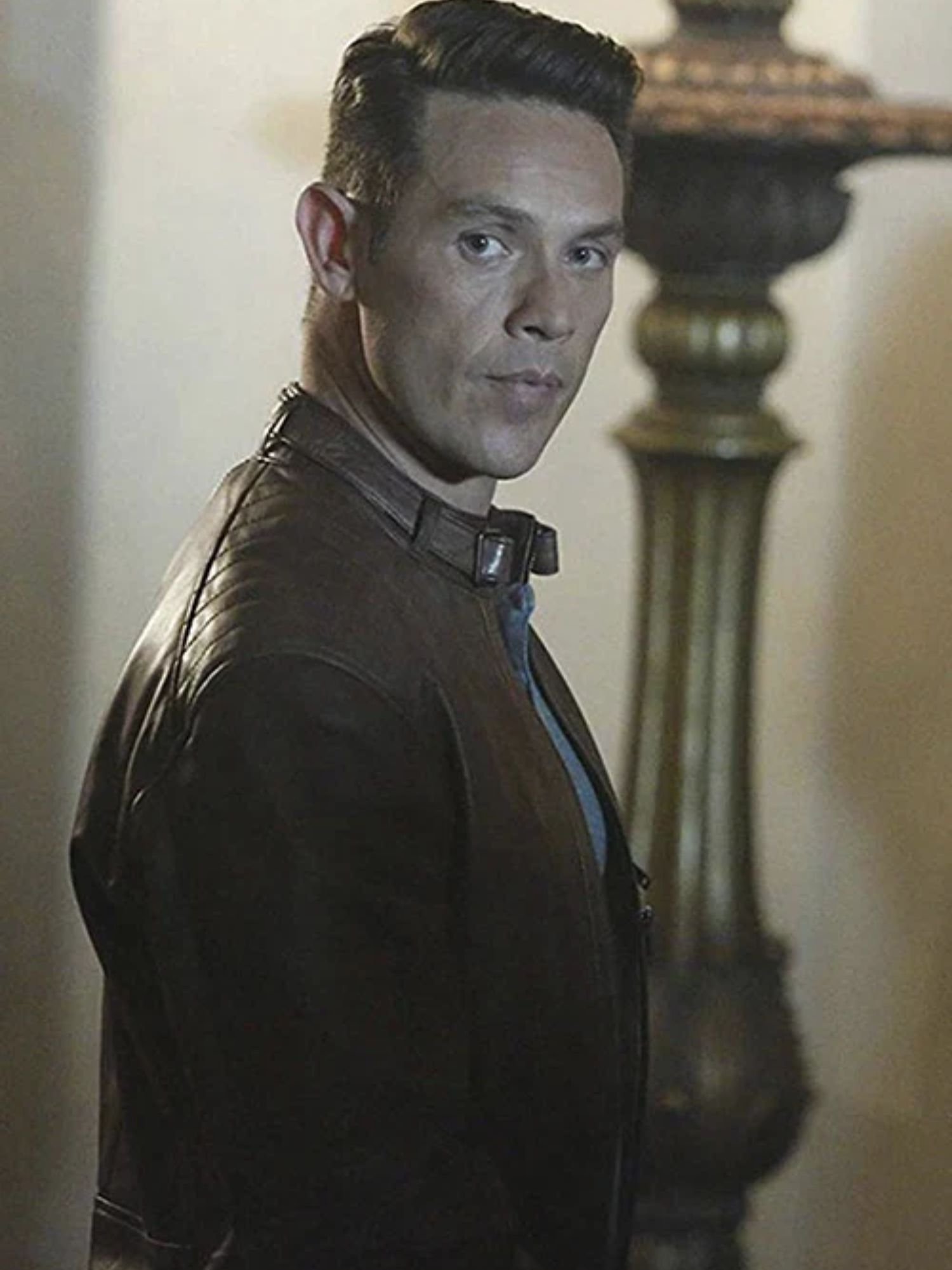 Channel Kevin Alejandro’s sharp Lucifer style with this sleek brown genuine leather jacket