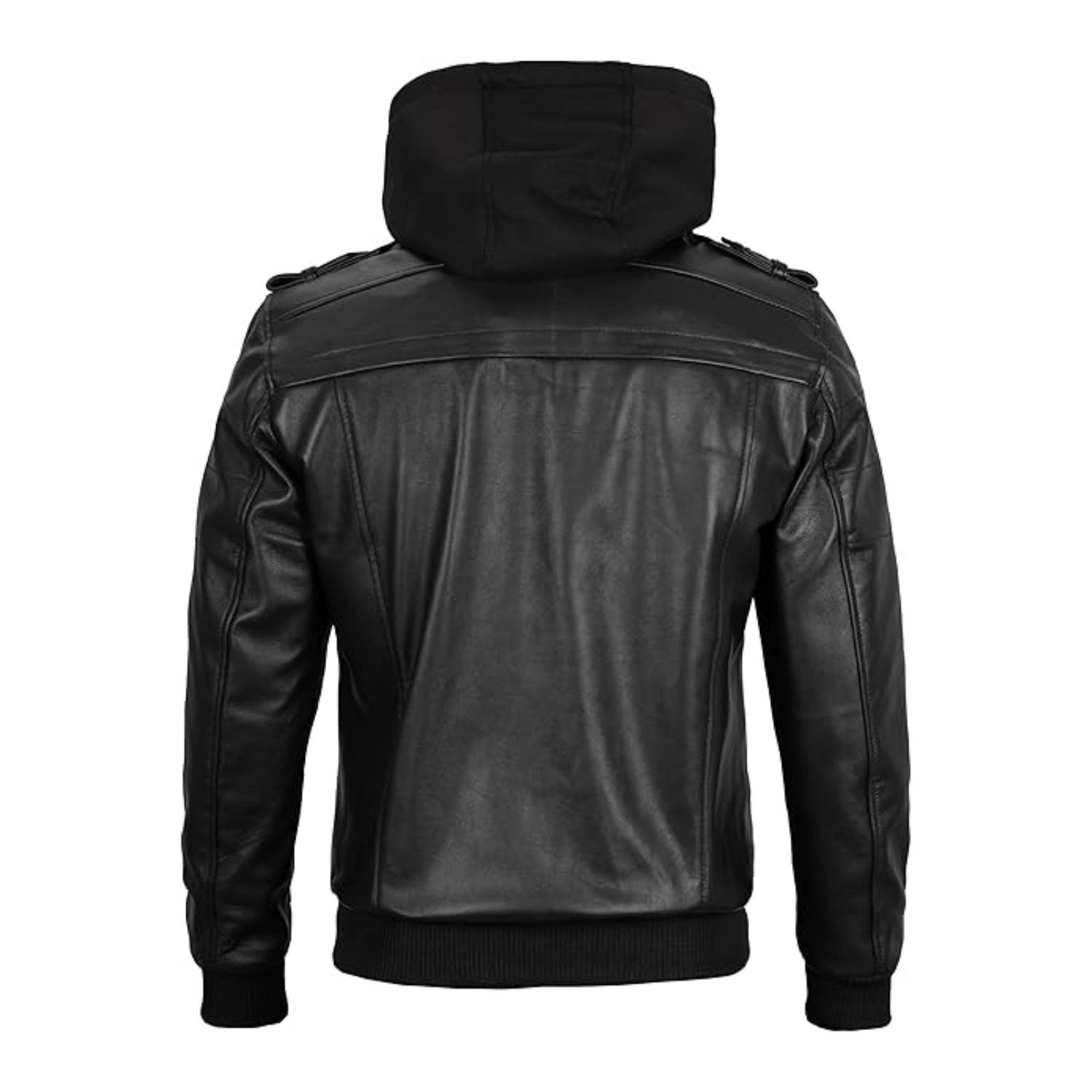 Kevin Hooded Genuine Leather Black Bomber Jacket