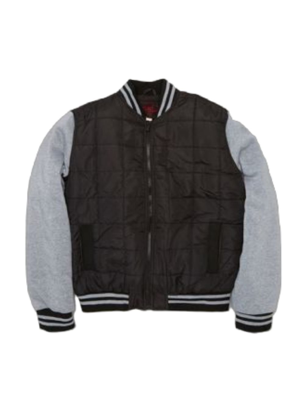 The front zipper closure offers ease of wear and a secure fit, while the rib knitted collar adds a classic bomber jacket touch. Rib knit cuffs enhance comfort and help maintain the jacket’s structured shape. Finished in black, the jacket delivers a sleek and versatile look that pairs effortlessly with casual and streetwear outfits.