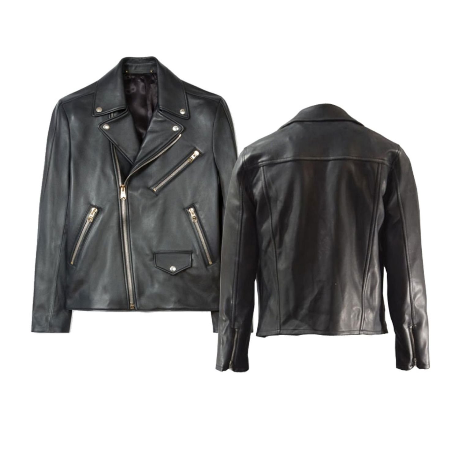 The color of this marvelous jacket is black which makes it individual. The front has an asymmetrical zipper closure. It has sleeves in its full length and in full fitting. The collar has lapel style with a button on the corners. It has one pocket which is welt zipper and presents on the left chest and one small flap pocket on the left side and two pockets are present at the waist and all are zipped. The cuffs of the gorgeous jacket are zipped. It requires you a very good and modern look whether it is to be wear in any casual function or you are going to ride a bike.