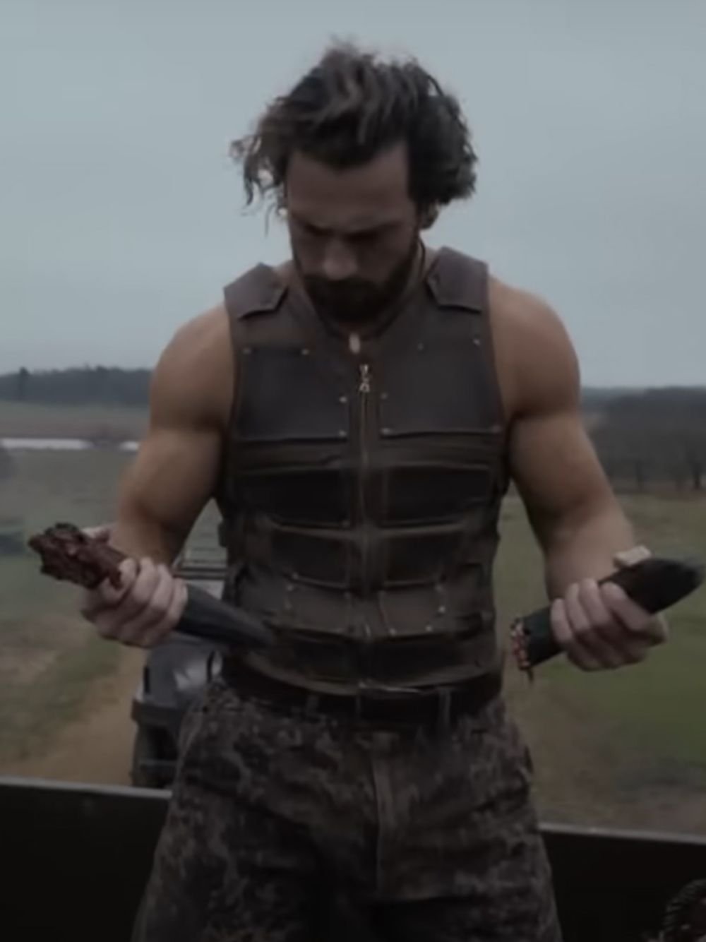 Sergei Kravinoff Kraven the Hunter Aaron Taylor-Johnson Brown Leather Vest