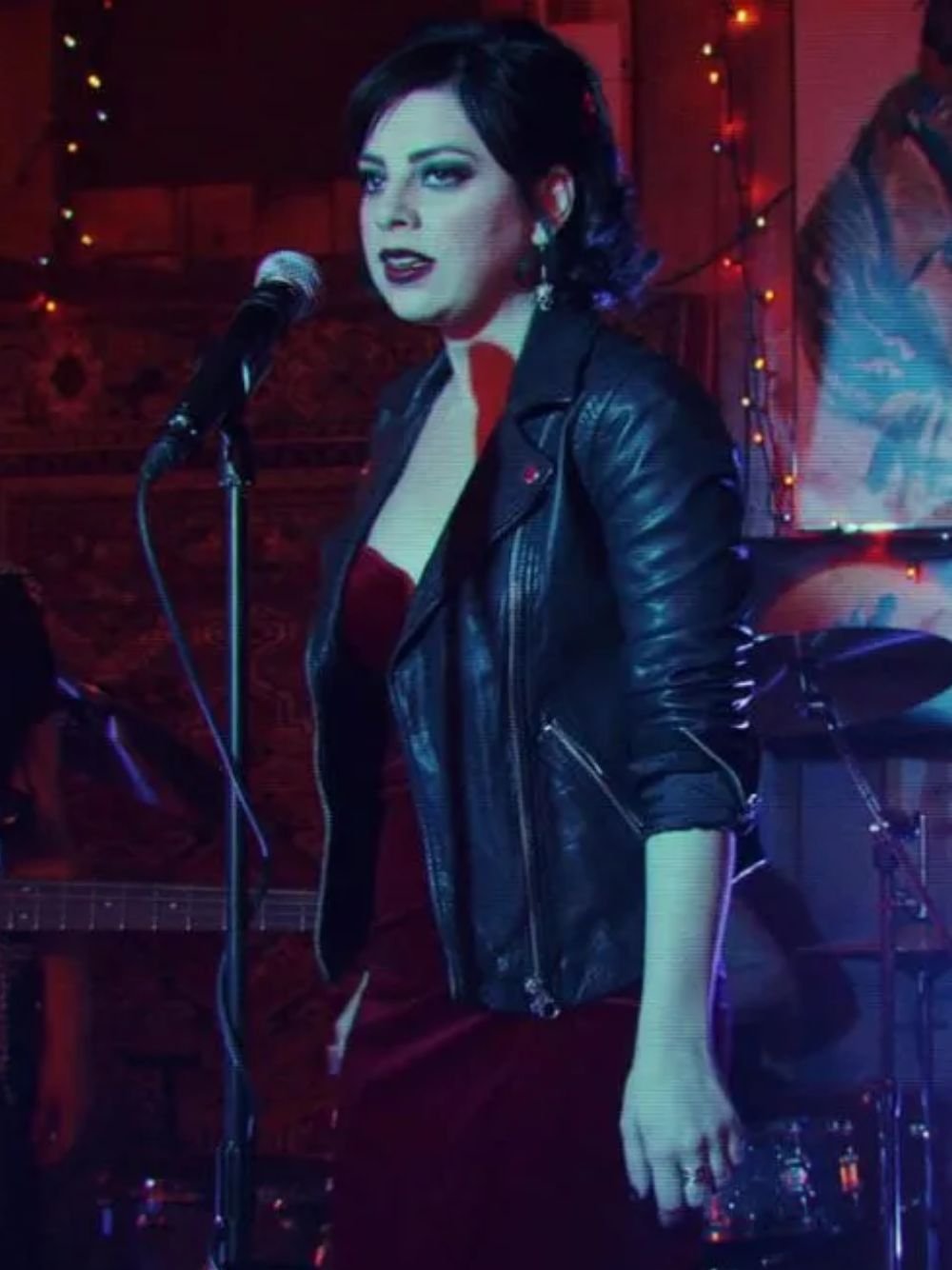Krysta Rodriguez Daybreak Ms Crumble Black Biker Vegan Leather Jacket