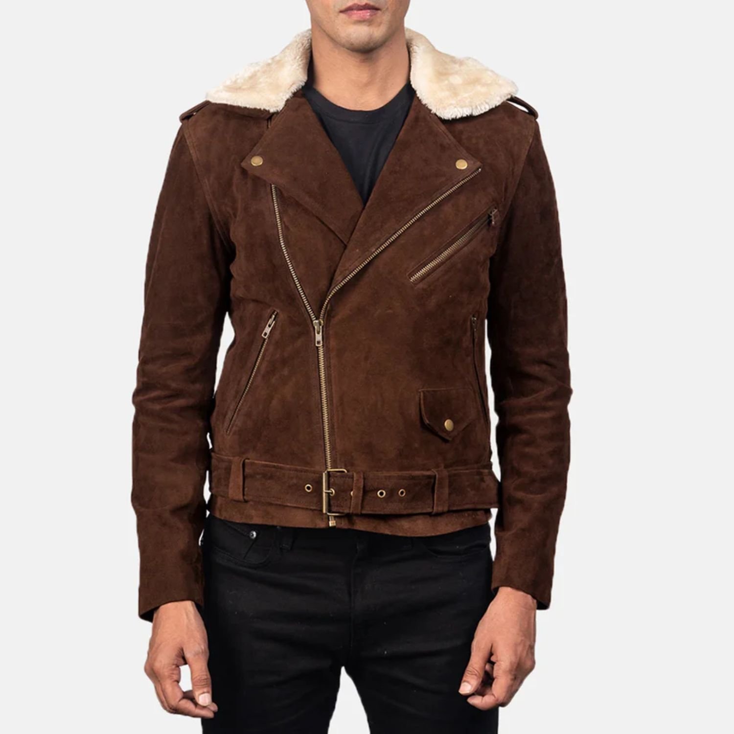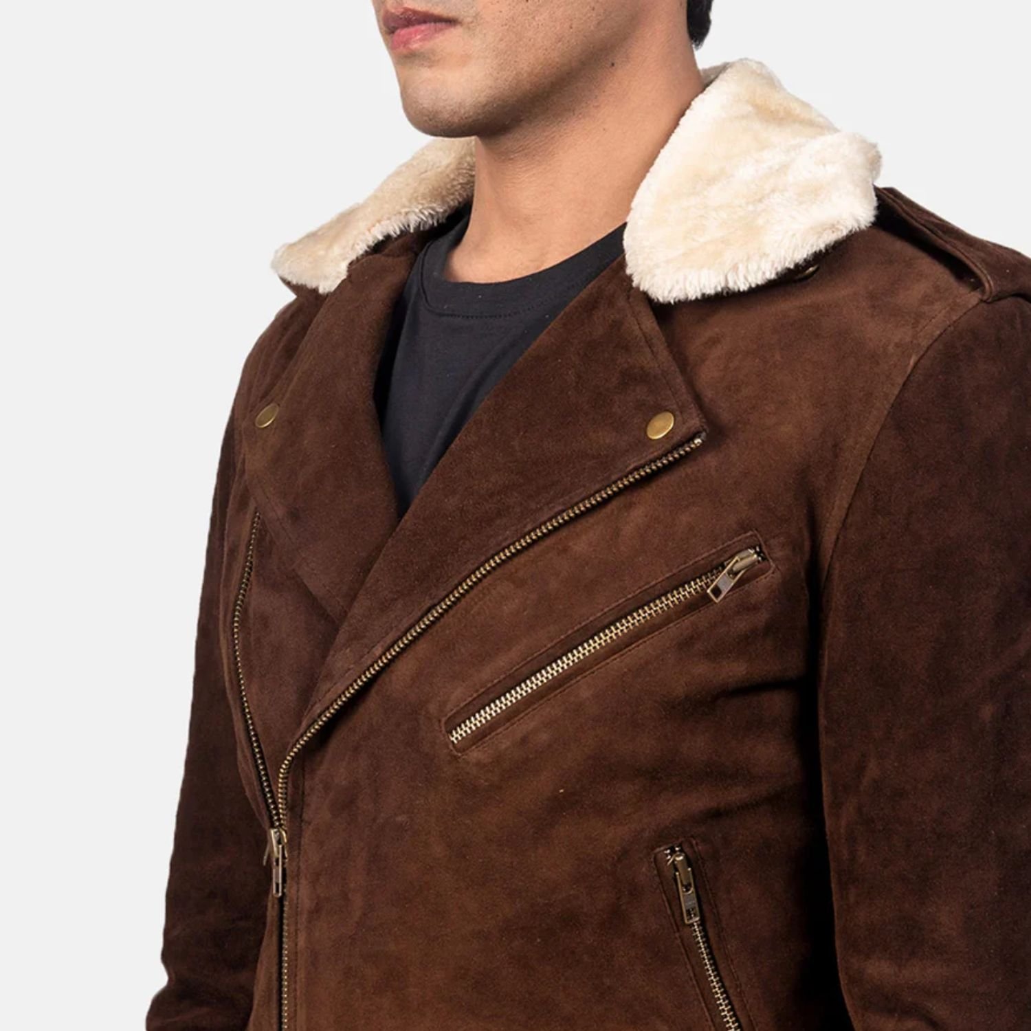 Bikers have a never-ending love for jackets. A jacket is a mandatory accessory for any biker. For all the hardcore bikers, Movie Jackets Hub has brought this incredible Kyle Brown Shearling Asymmetrical Zipper Suede Jacket into its collection. Kyle Brown Shearling Fur Mens Asymmetrical Zipper Suede Leather Jacket is highly recommended for all bikers. It has impressive design details for offer. The stylish jacket is made from suede leather. Its interior is lined with viscose lining/shearling fur. The cool aviator biker jacket has strapping done on the shoulder. The notch lapel-style collar looks fantastic with the jacket. It has a beautiful asymmetrical zipper closure, further enhancing the jacket’s appeal.