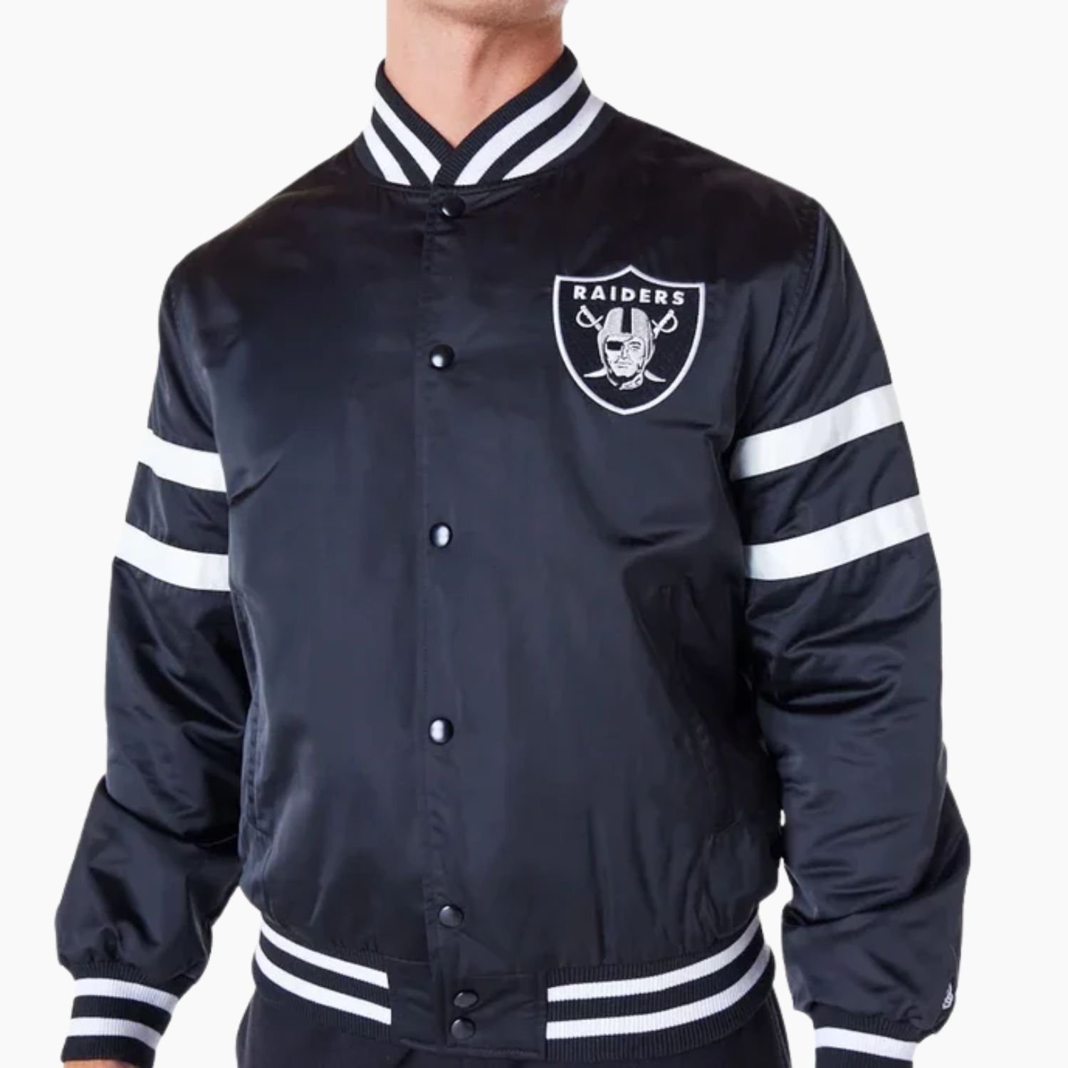 Crafted with fine quality stitching this bomber jacket offers long lasting durability and an elevated fit. Perfect for collectors Raiders fans or anyone who loves premium satin outerwear this jacket is a must have addition to your wardrobe.