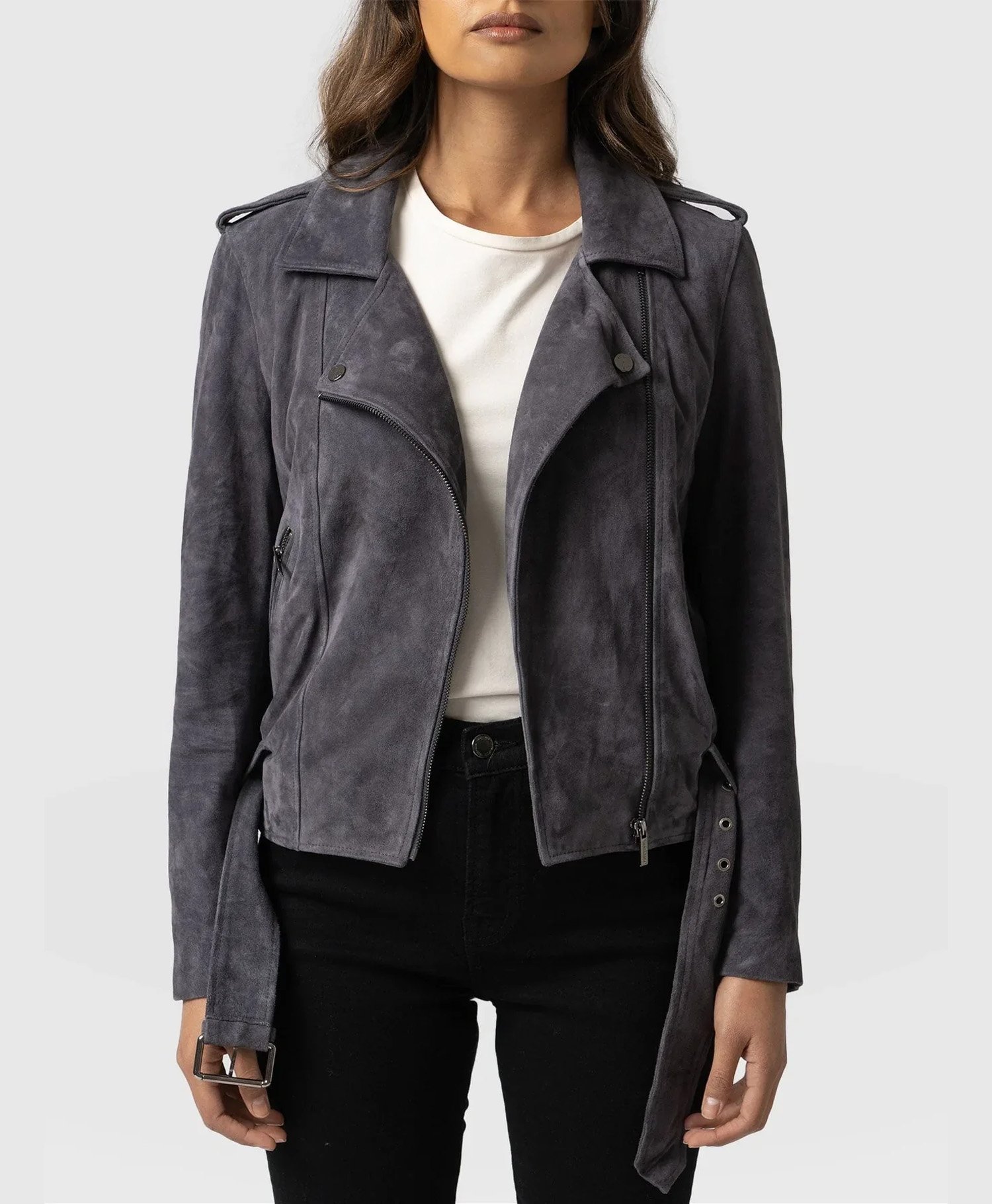 Upgrade your outerwear game with the Leather Suede Jacket Charcoal by MJH, a timeless piece designed for women who appreciate sophistication and subtle luxury. Handcrafted from high quality genuine suede leather, this jacket delivers a soft texture and refined charm that never goes out of style.
