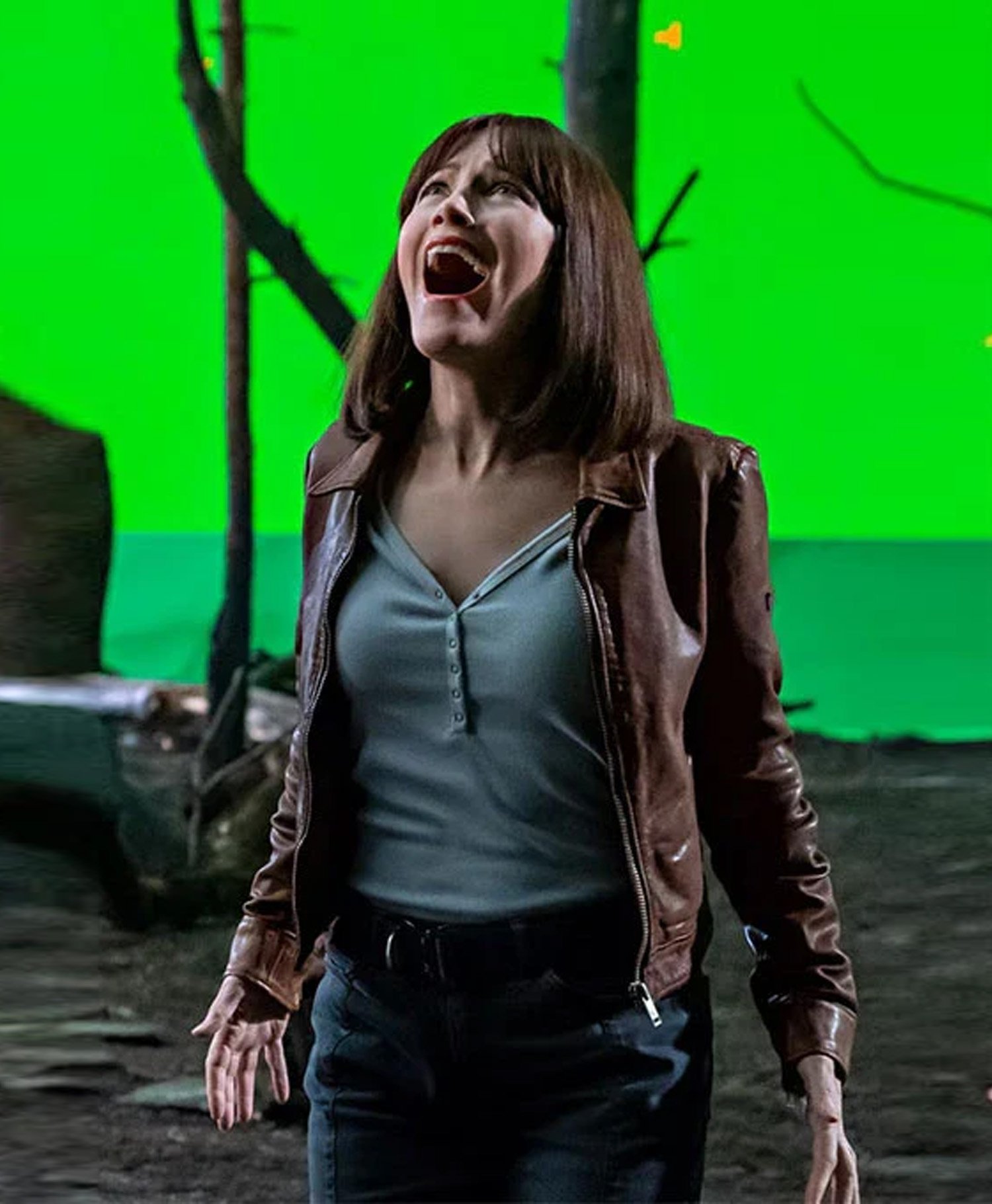 Leslie Mann The Bubble Brown Leather Jacket