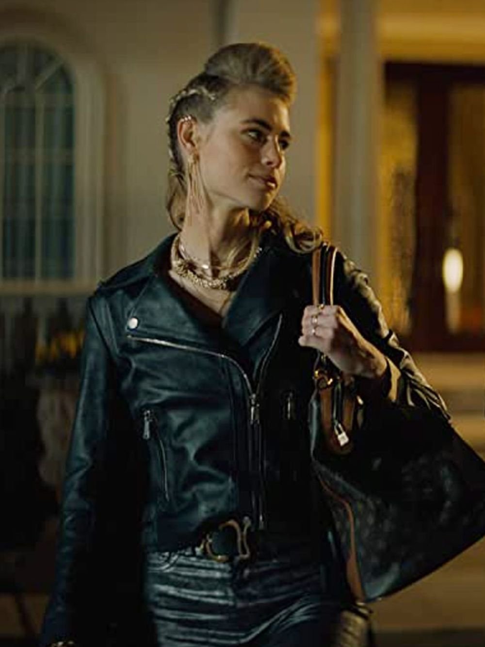 Lucy Fry 2021 Movie Night Teeth Zoe Black Biker Leather Jacket