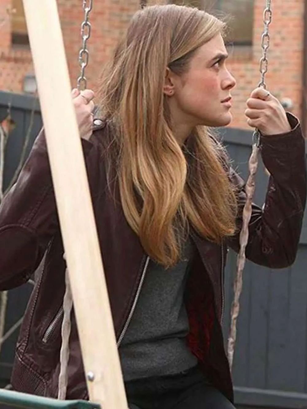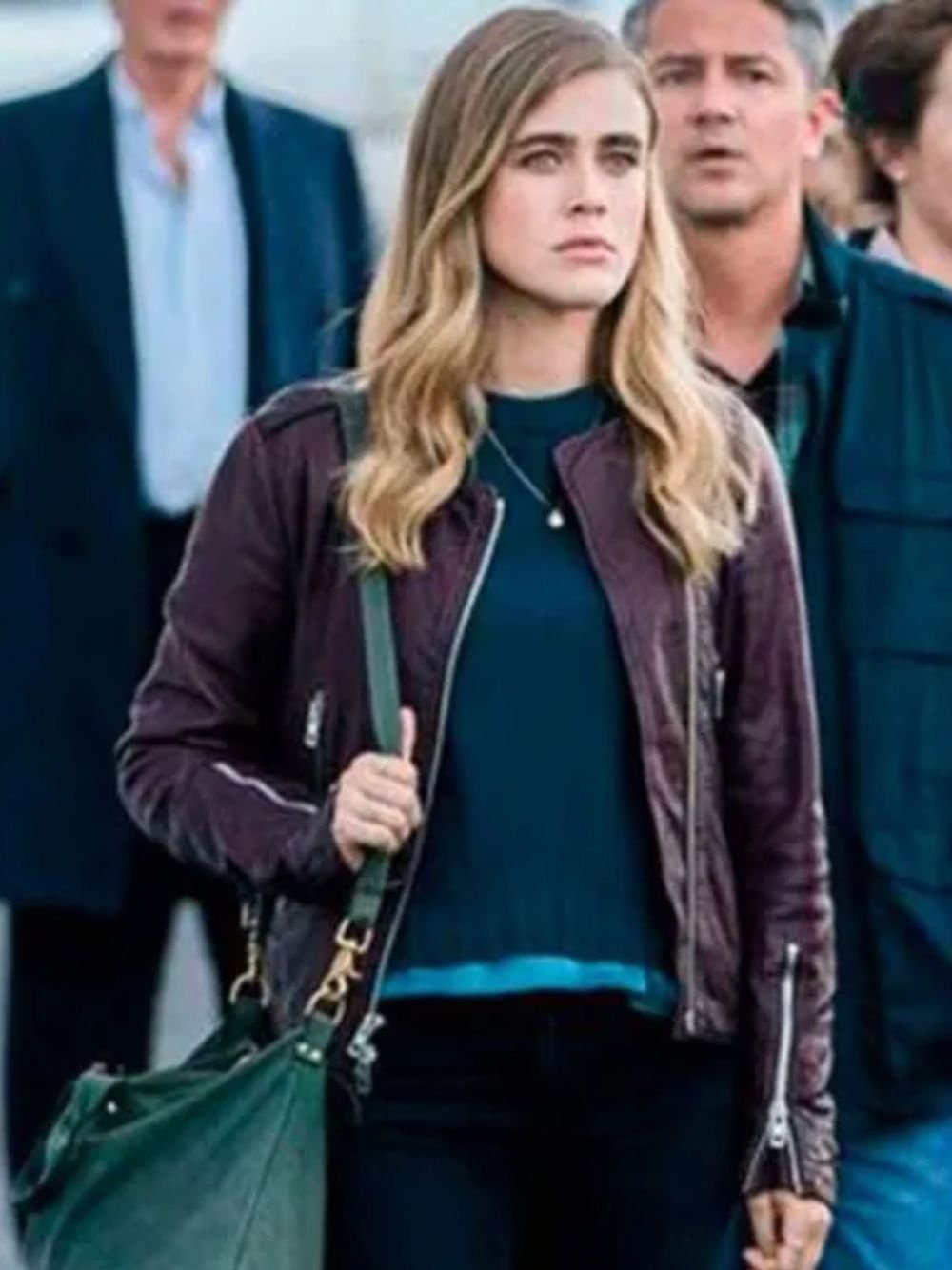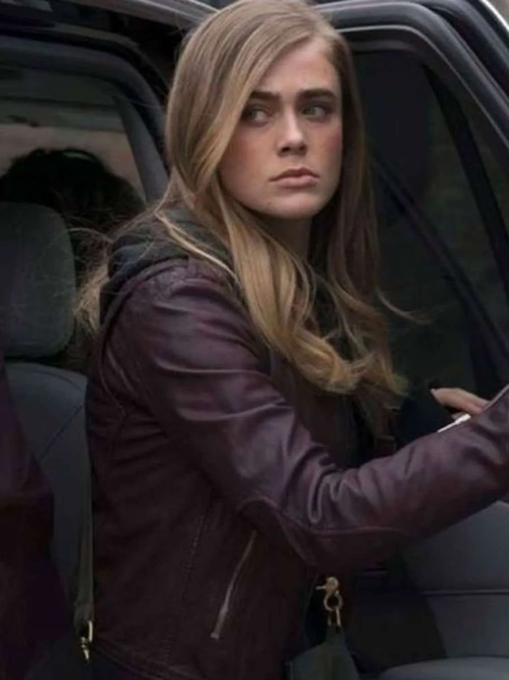 Melissa Roxburgh Manifest Michaela Stone Collarless Purple SlimFit Leather Jacket