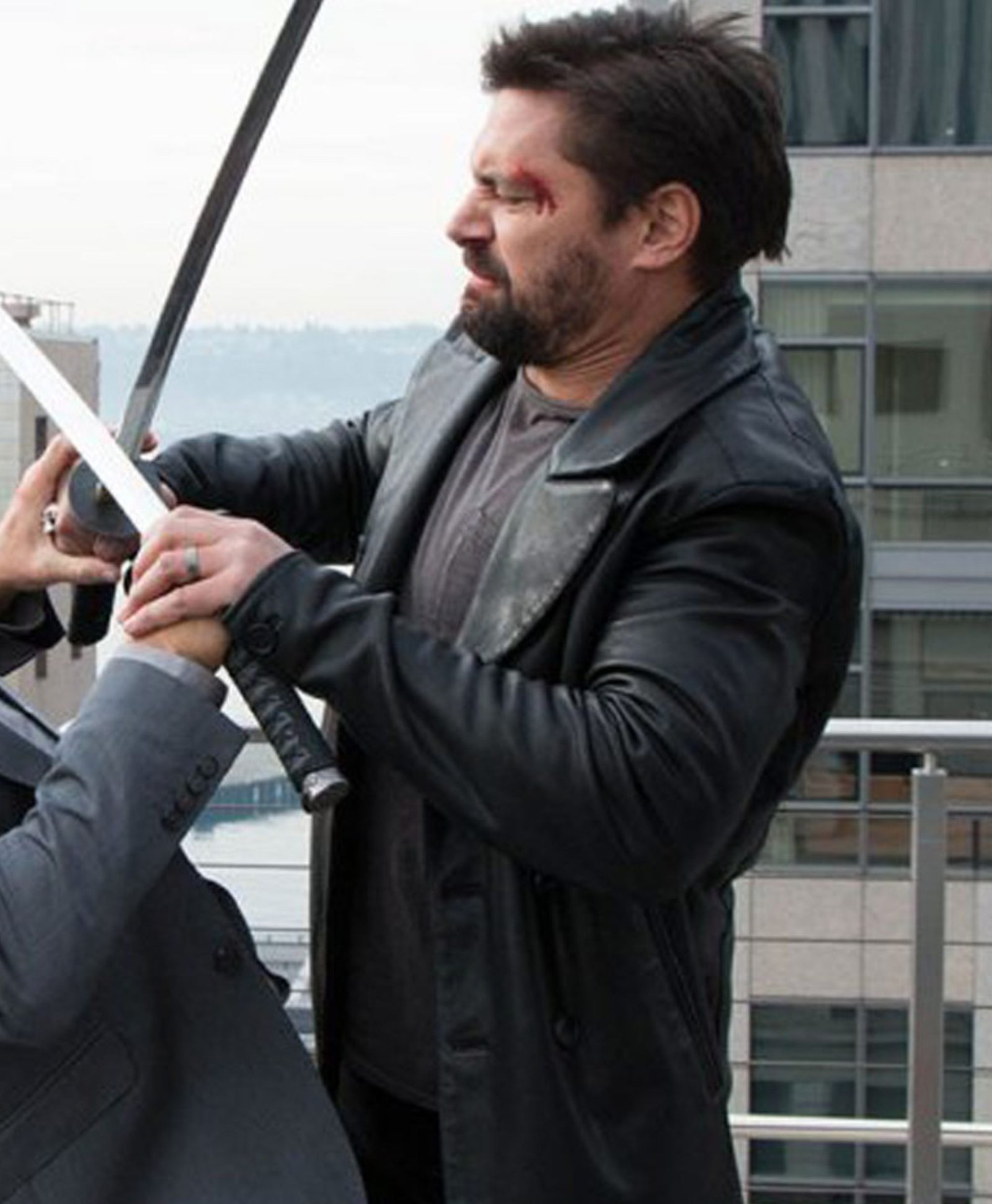 Creed Beta Test Manu Bennett Black Leather Peacoat