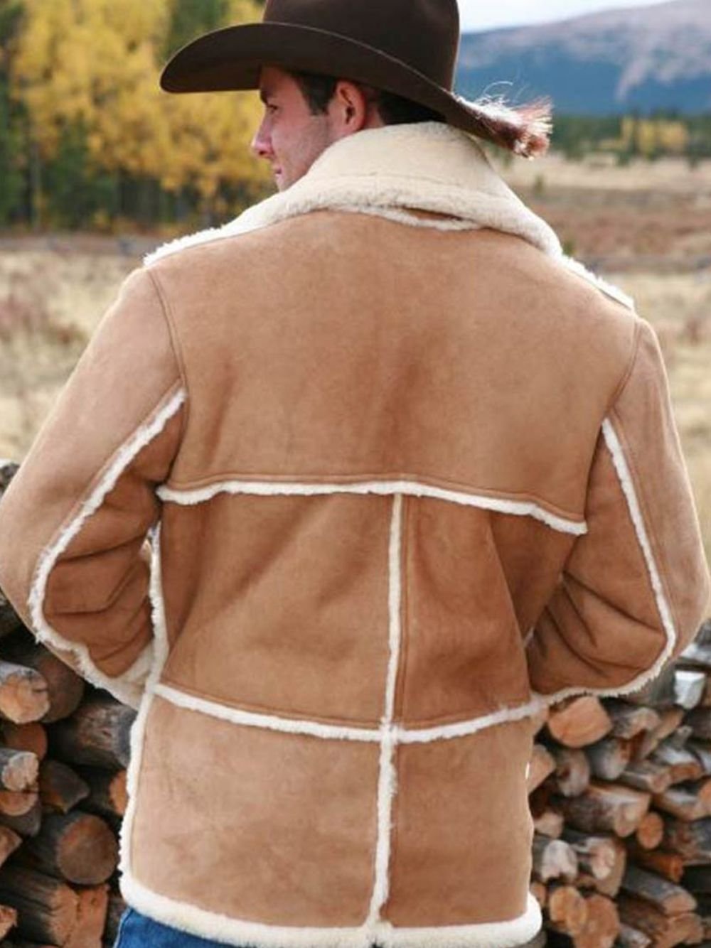 This alluring jacket has two fur-lined patch waist pockets on the outer side, and two pockets designed on the inner side. Outer suede leather and inner soft shearling lining will not only keep you warm but also make you feel comfortable. It comes in a beautiful brown color and white. This jacket has a shearling collar style. The cuffs are shearling in class which is very decent. The closure from the front is buttoned. The color of this jacket is brown, which is calm. Now Enhance your personality by wearing this jacket and also Movie Jackets Hub offers this Man Shearling Suede Jacket at a discounted price so Avail of this offer and buy your jacket. You may also read about What is Shearling Fur.